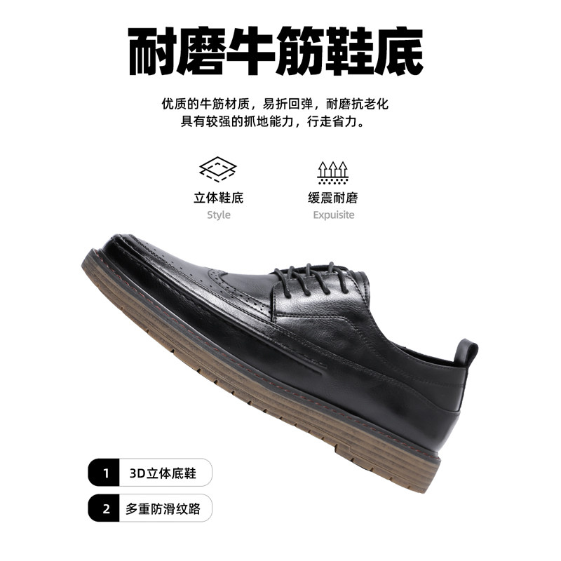 皮鞋男款高级感厚底增高英伦通勤大头德比鞋男冬季新款低帮马丁靴