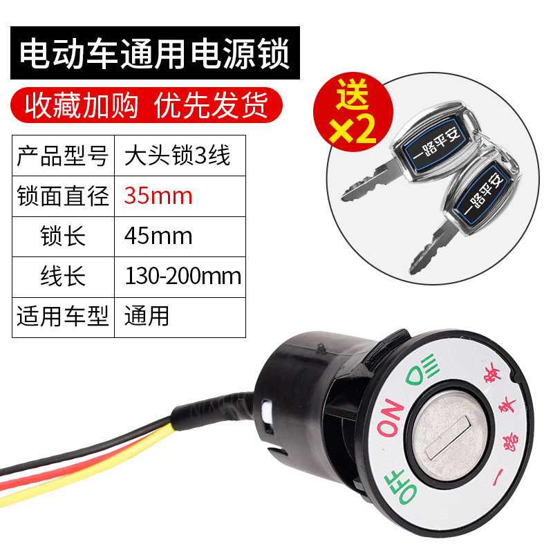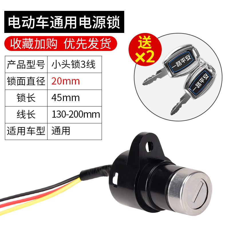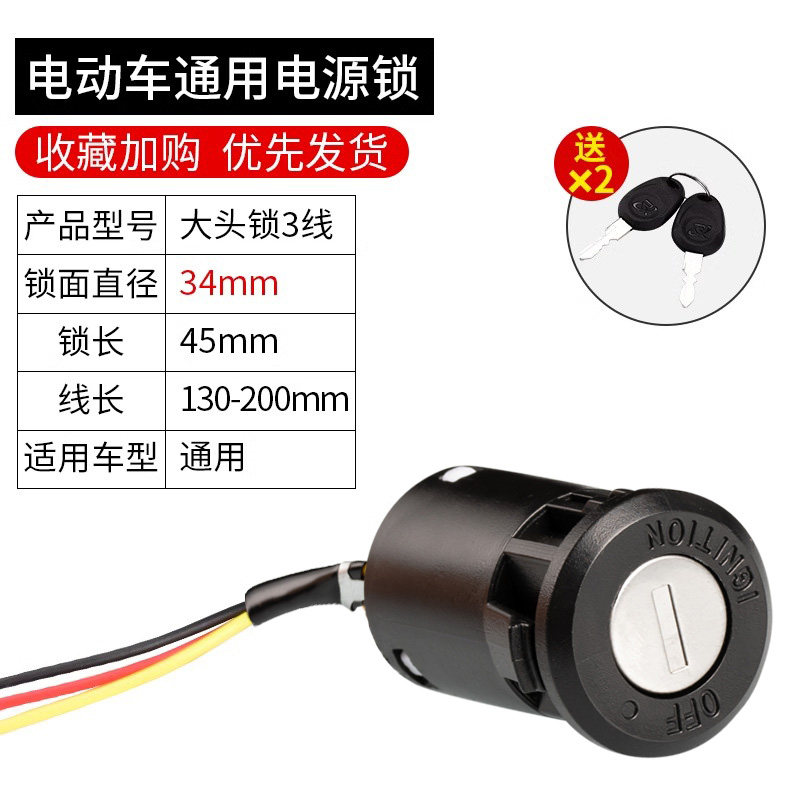 电动车锁电源锁钥匙开关总成电门锁通用电瓶车三轮车启动锁芯全套