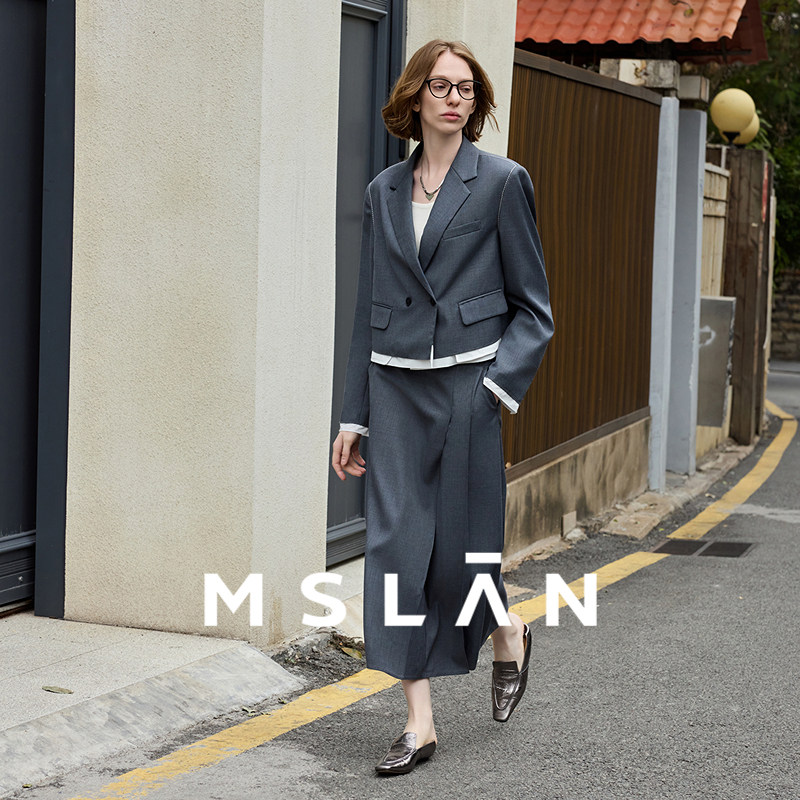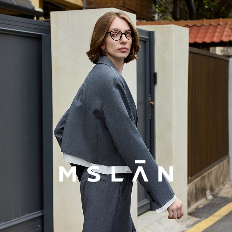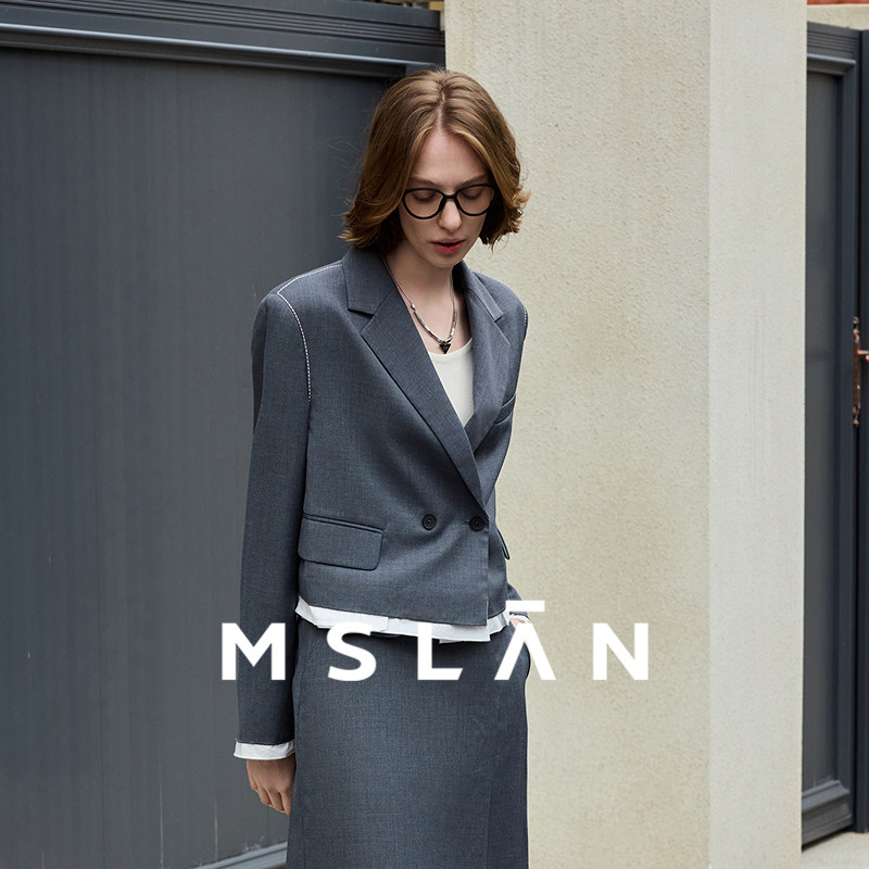 格雷系/MSLAN26春气质冷淡风V领修身收腰短款小个子西装