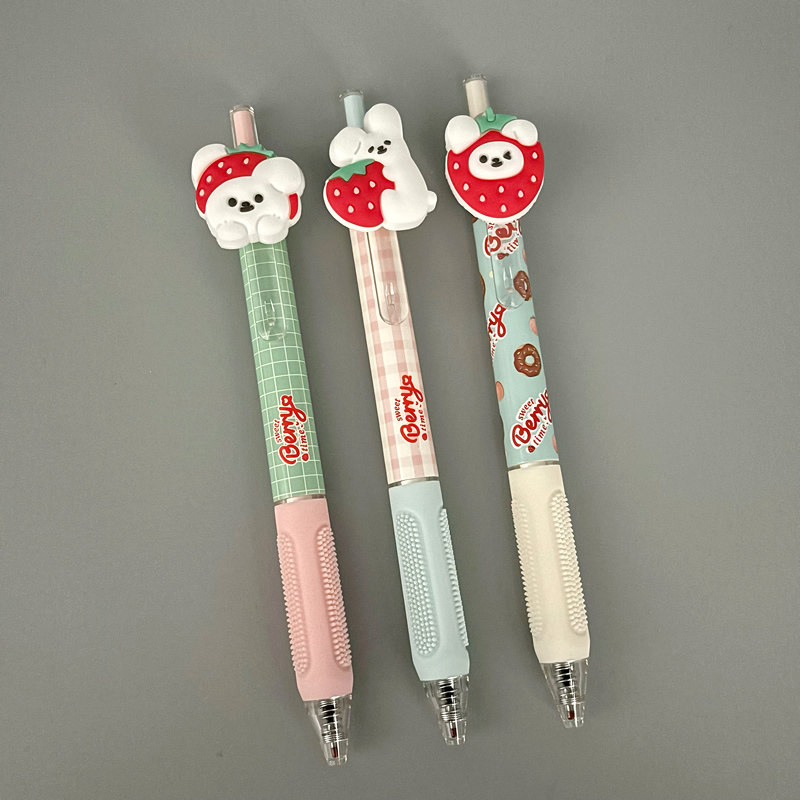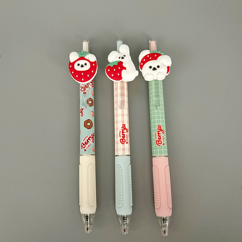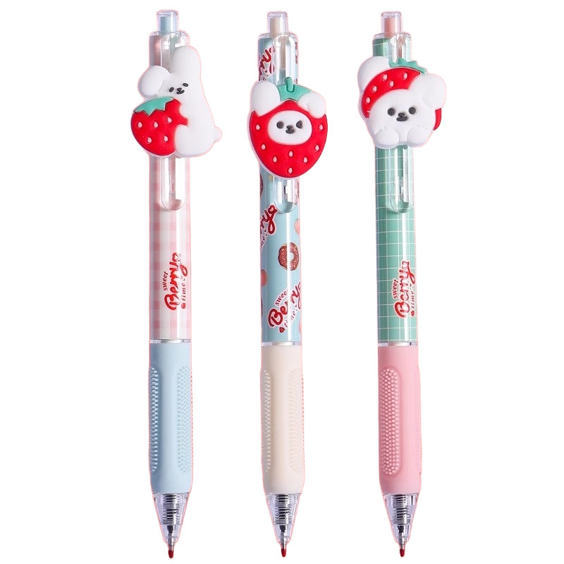 晨光MAS甜莓时光系列按动中性笔草莓兔兔超萌可爱高颜值ins日系速干水笔ST笔尖学生考试用笔J3440黑色0.5水笔