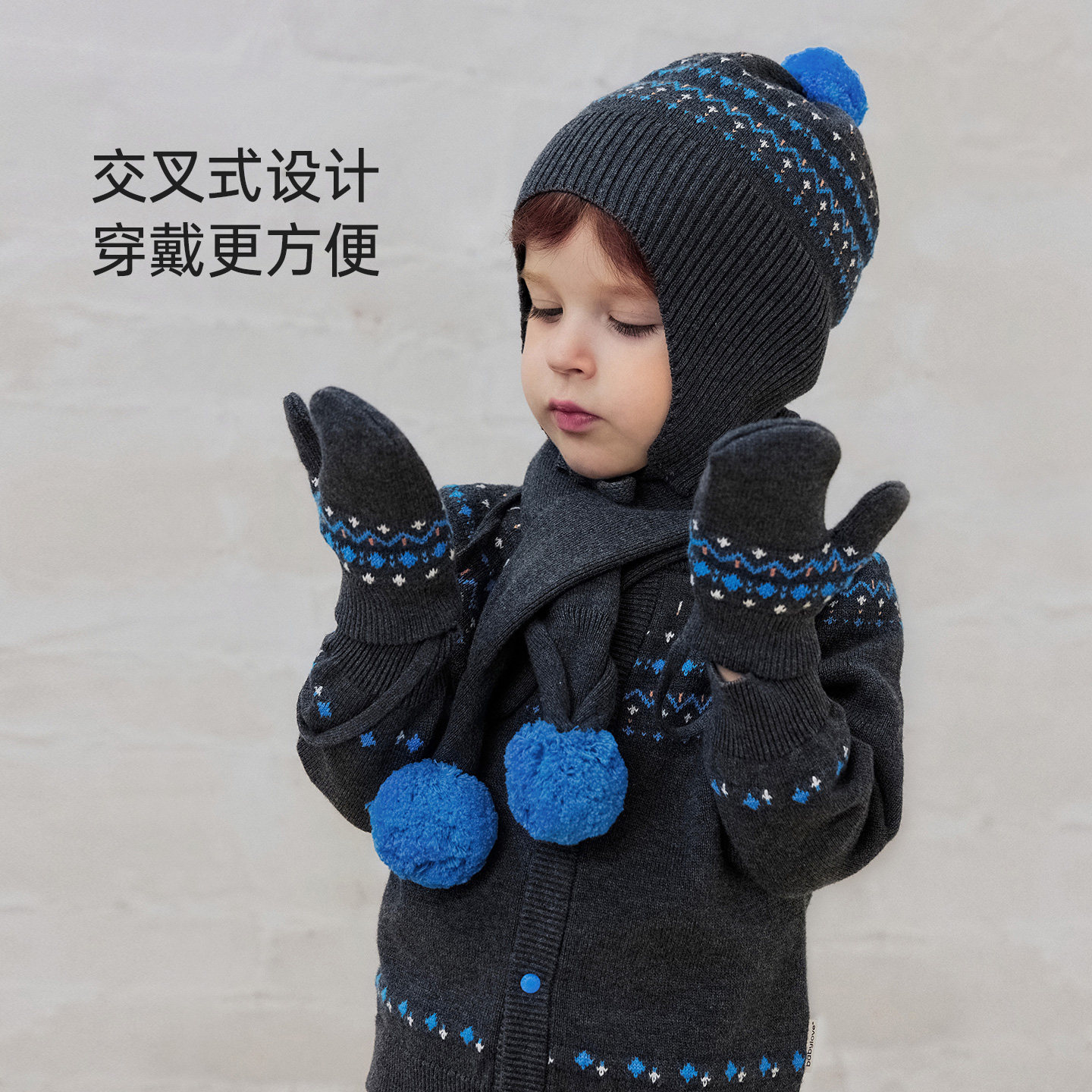 babylove宝宝交叉围巾纯棉保暖防寒针织围脖护颈百搭婴儿外出脖套