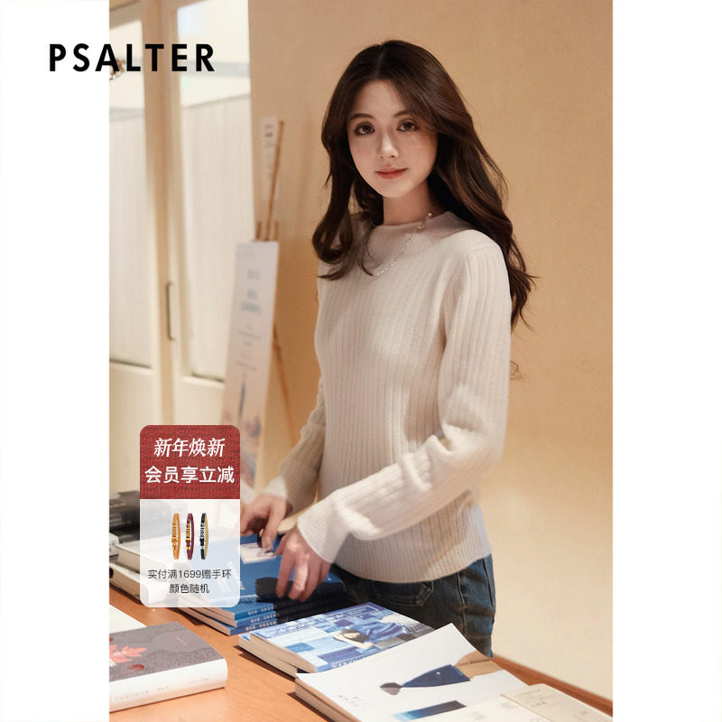 【100%山羊绒】诗篇专选无缝一体条纹肌理打底衫针织衫冬款
