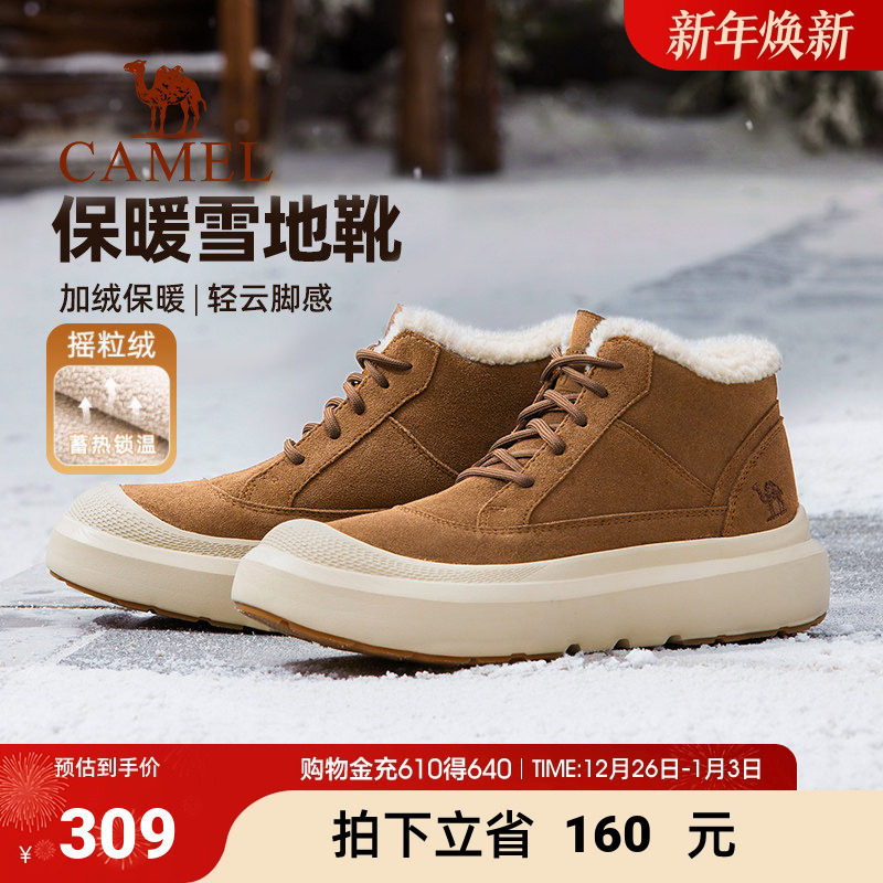 【踏雪】骆驼男鞋2025冬季款加绒棉鞋皮毛一体保暖防寒雪地靴防滑
