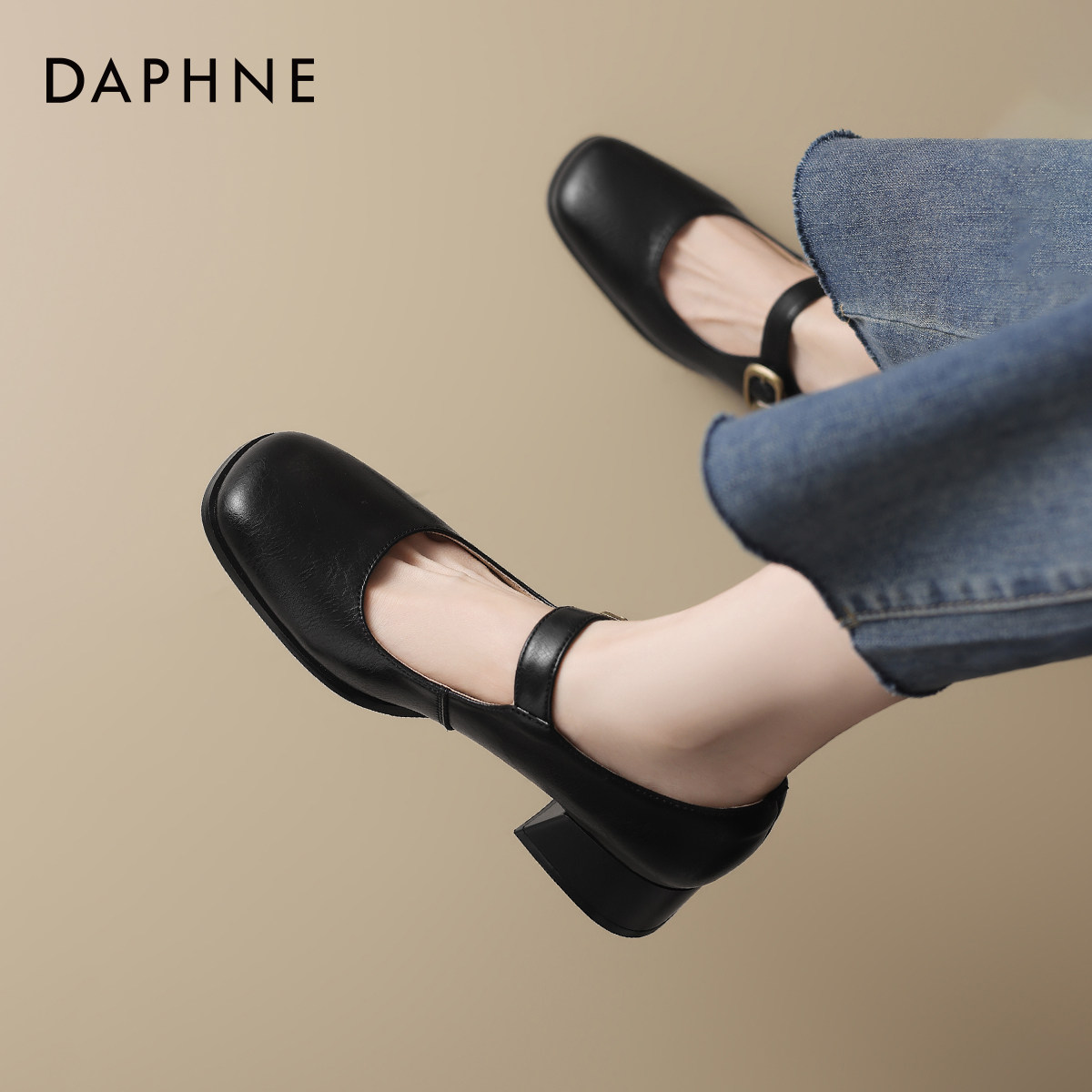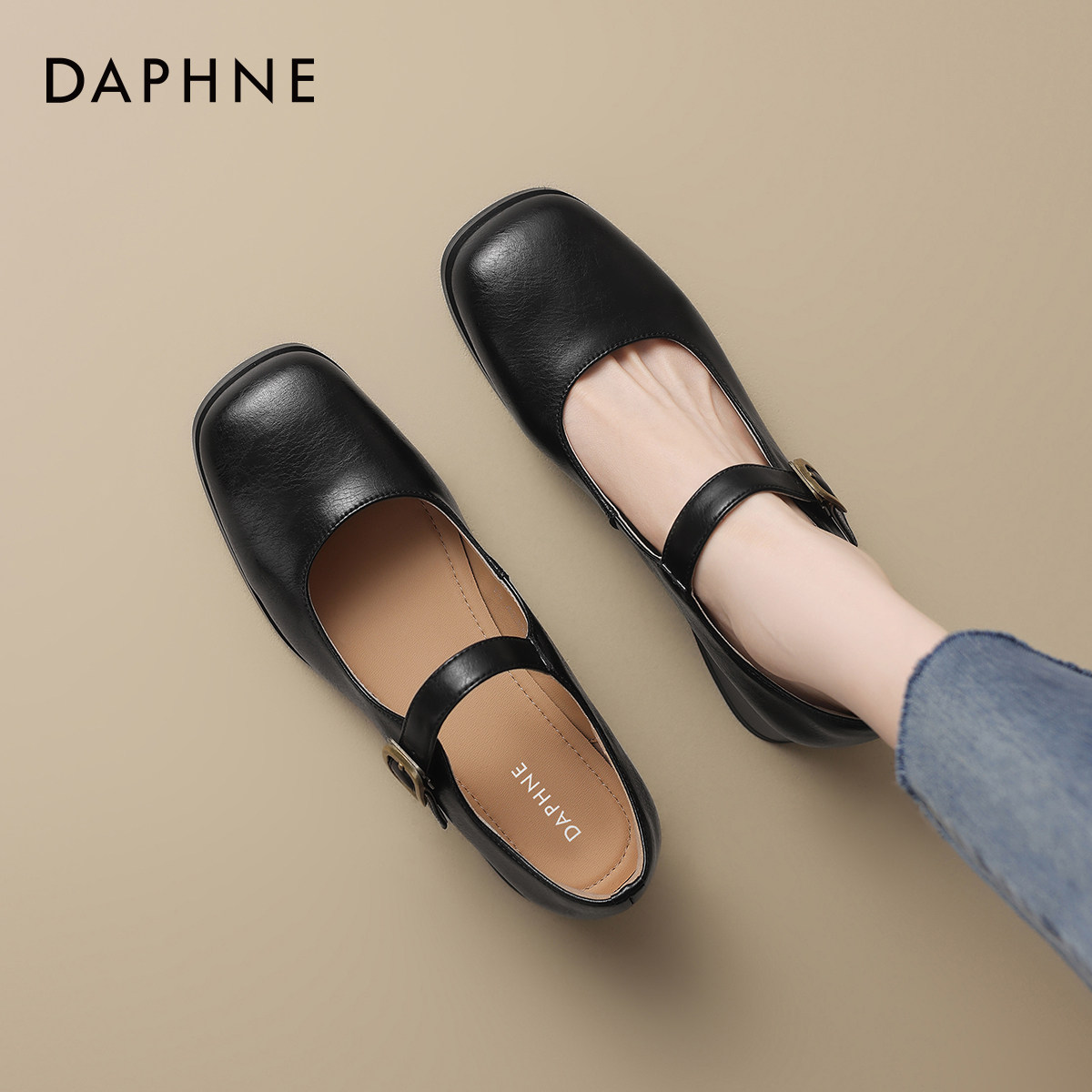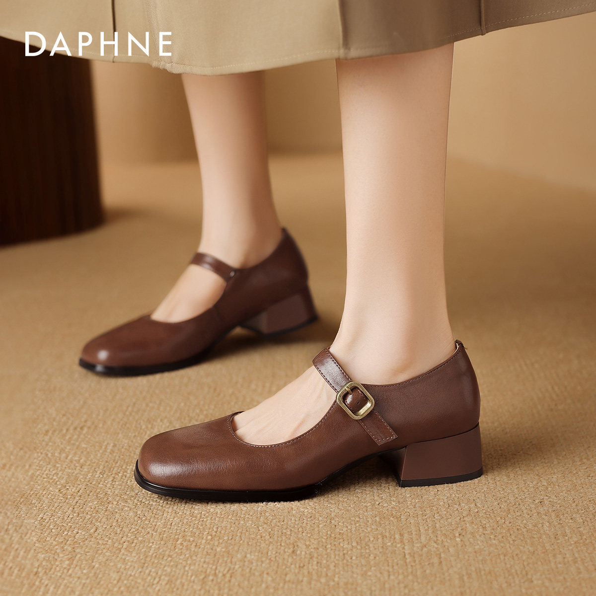 达芙妮单鞋女法式中跟玛丽珍鞋女2026新款方头通勤皮鞋女鞋子春季