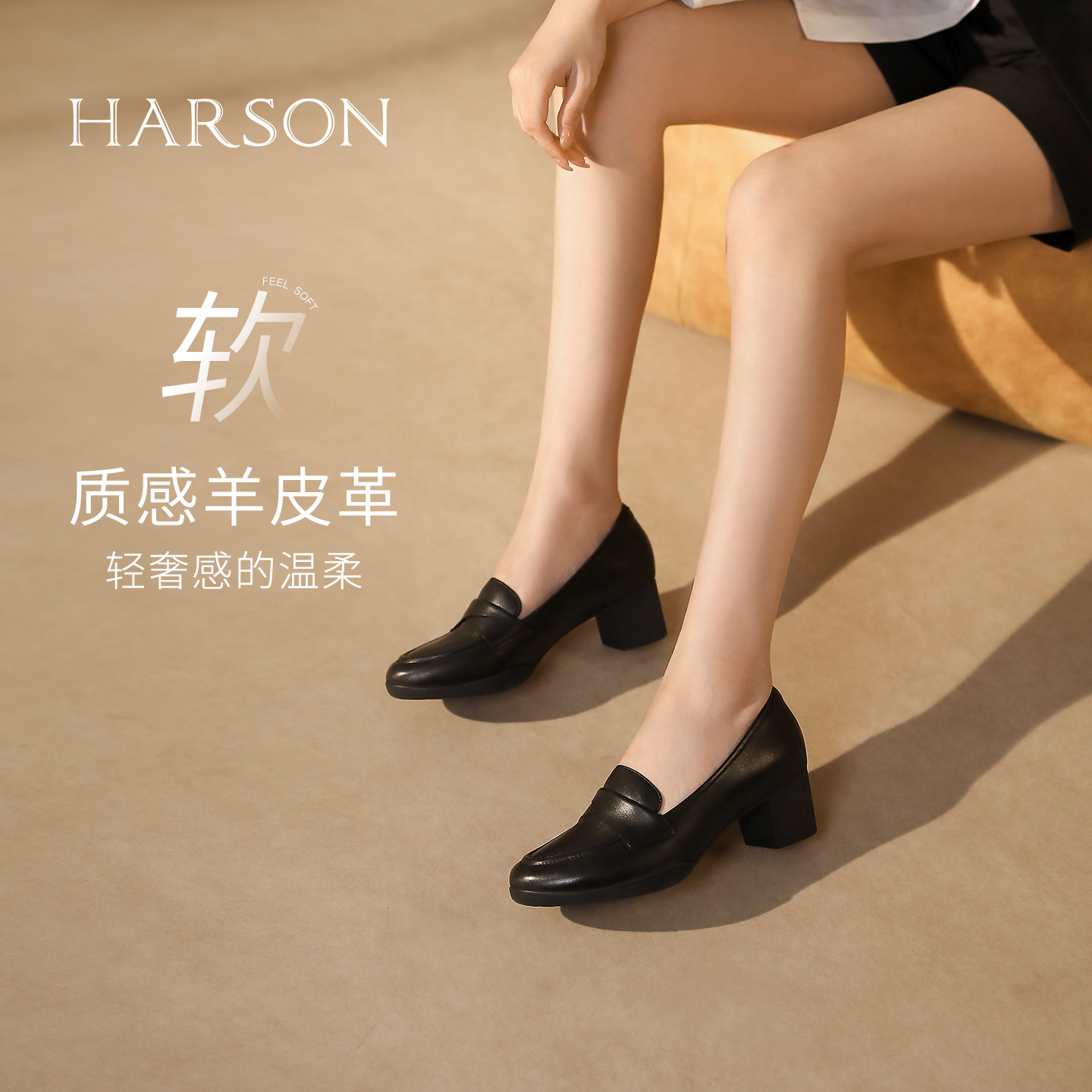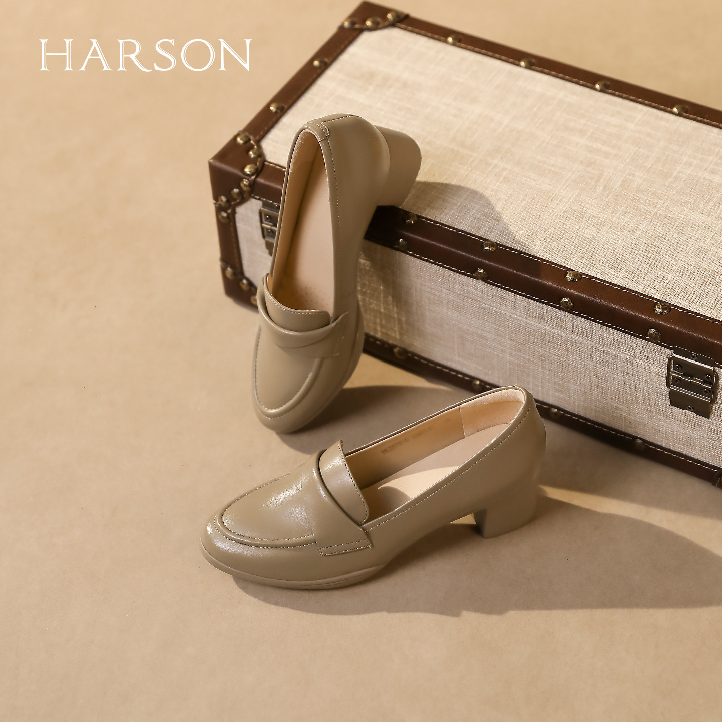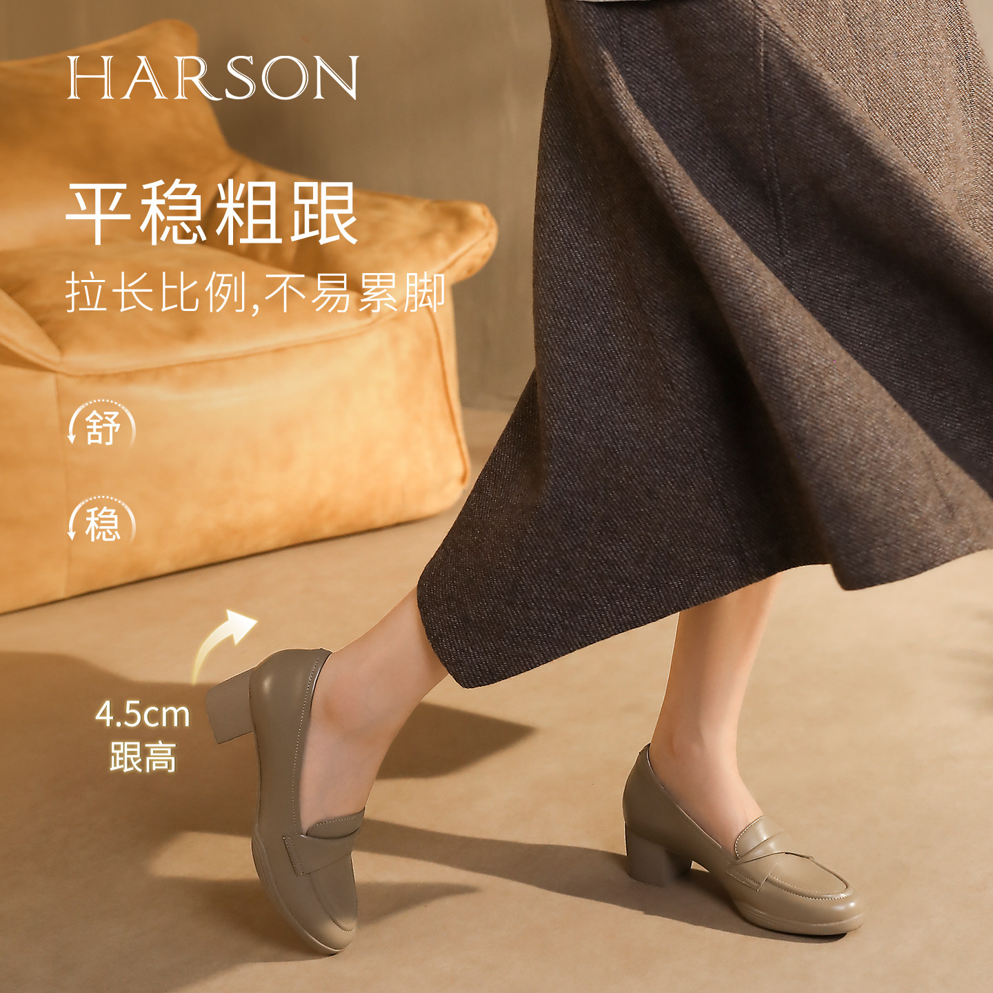 哈森真皮舒适圆头单鞋女2025秋季新款气质粗跟通勤鞋HL257910