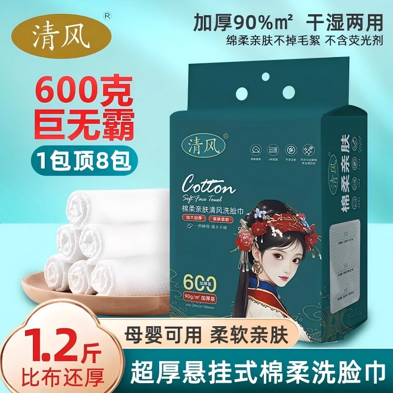 清风600g洗脸巾悬挂抽取式国潮洁面巾棉柔巾一次性洗面巾壁挂正品