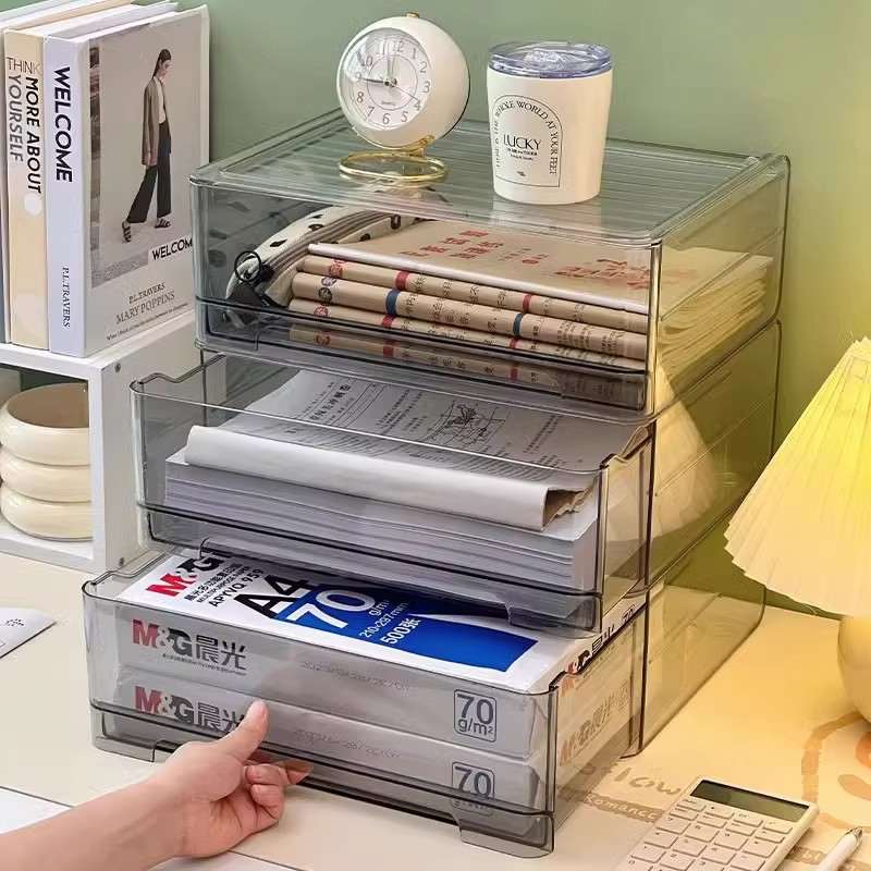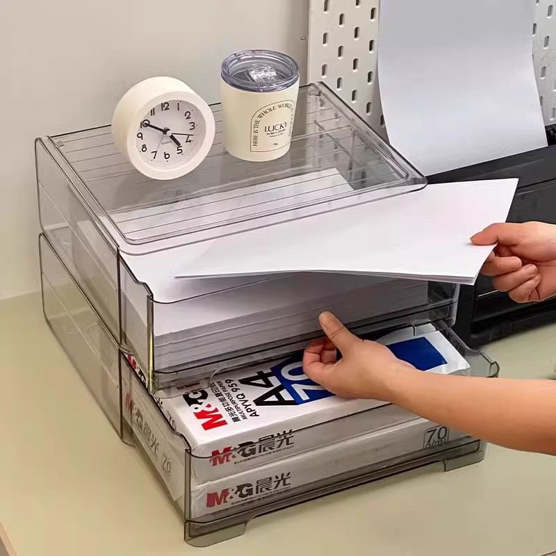 A4打印纸收纳盒办公室抽屉式文件置整理收纳工位柜物资料桌面