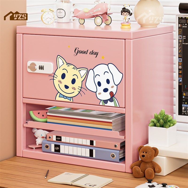 多巴胺桌面收纳柜带锁小型办公储物柜文件柜网红收纳储物柜收纳盒