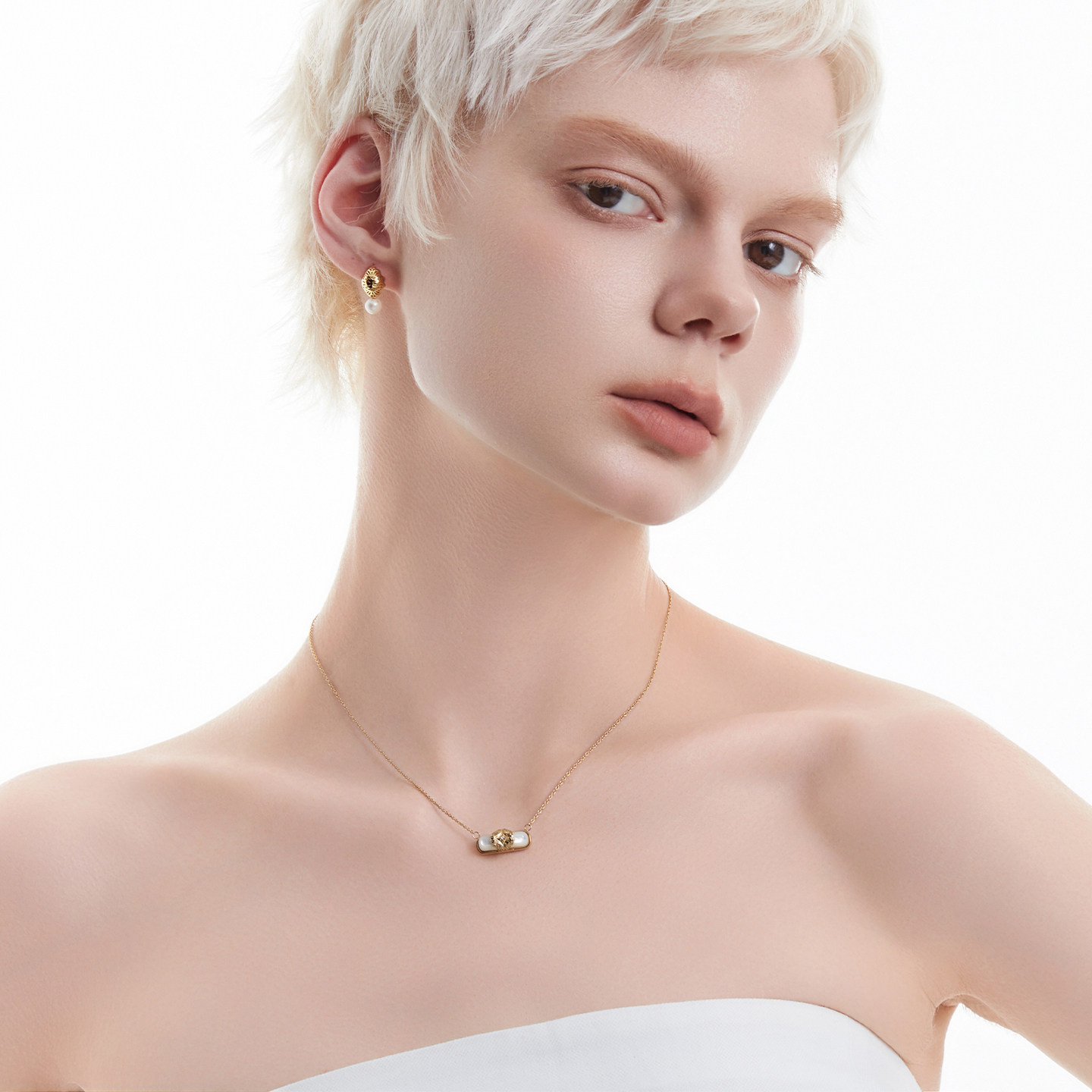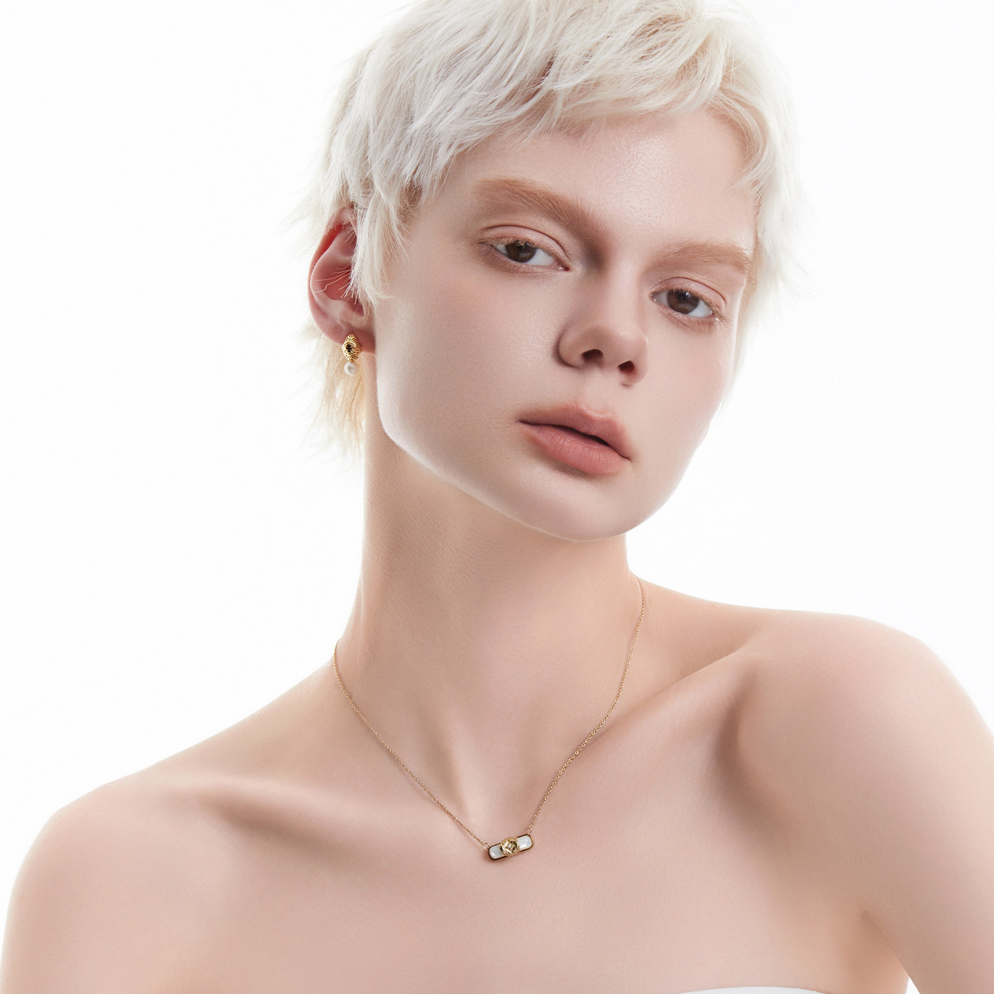 AmberLollipop天然白贝母项链女方形吊坠锁骨链小众颈链百搭配饰