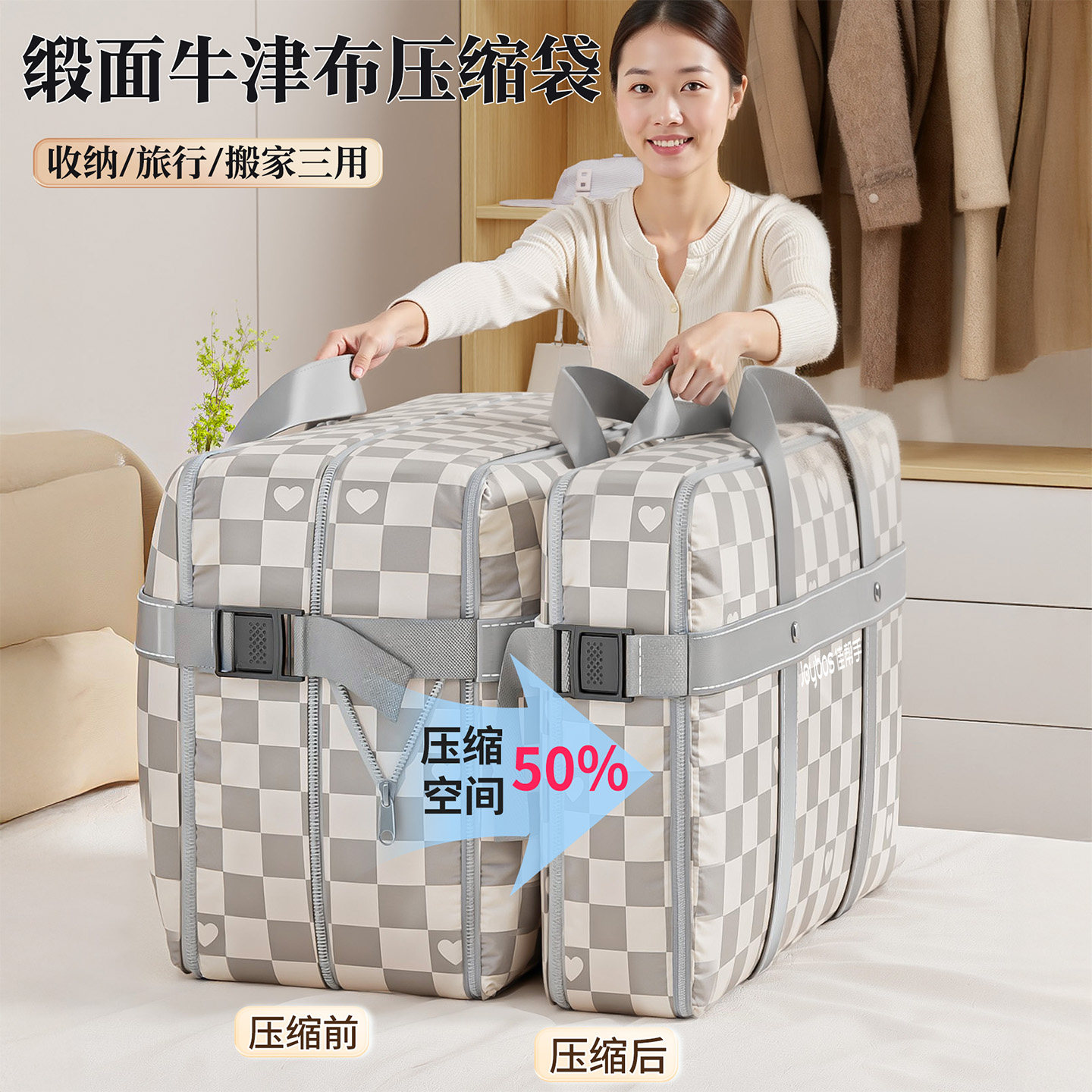 【国补15%】佳帮手免泵压缩格子收纳袋行李箱衣物被整理包打包袋