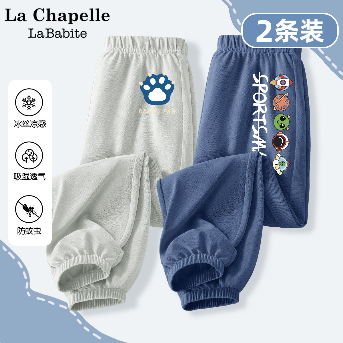 拉夏贝尔联名男童裤子夏季薄款2025新款夏装运动裤儿童冰丝防蚊裤