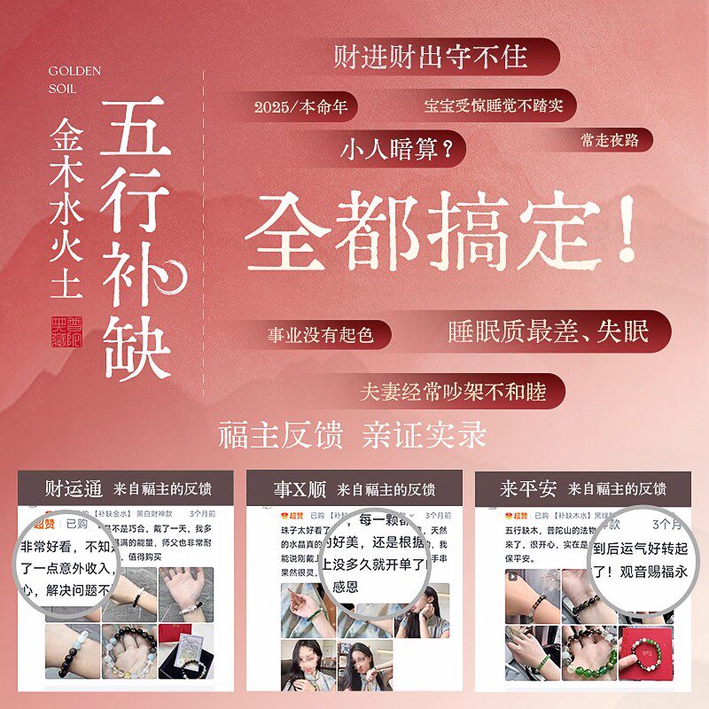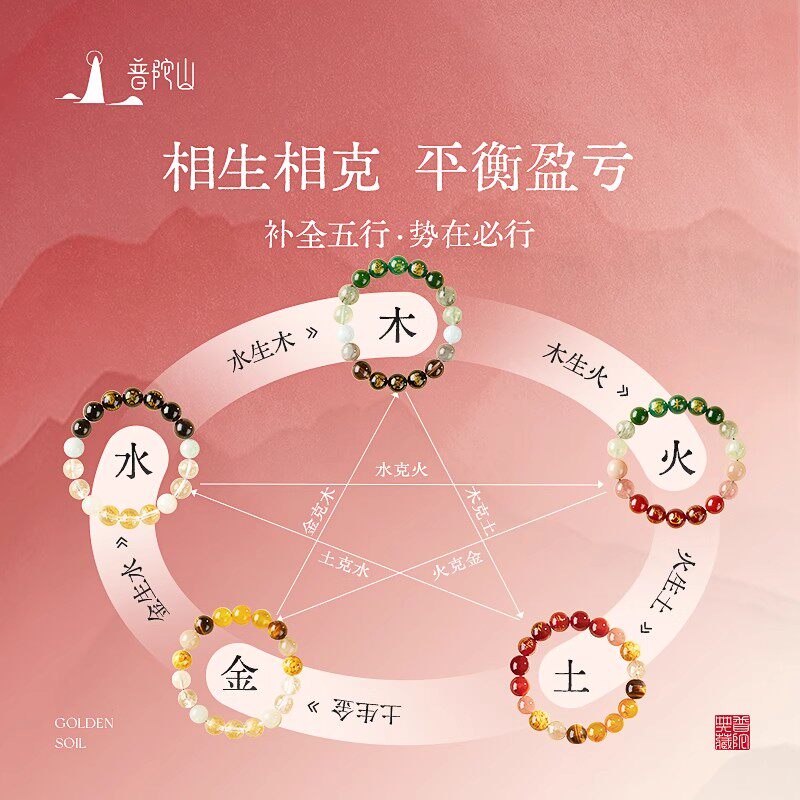 普陀山五行水晶手串男款官方旗舰本命年补缺金水土木火手链男士女