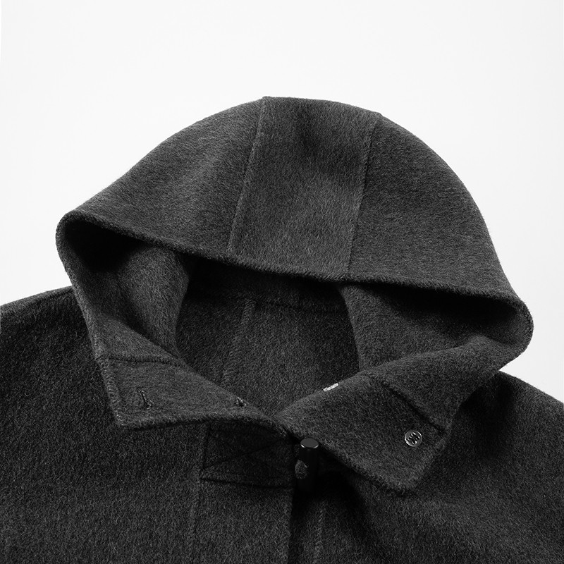 连帽设计 实用大口袋 衣长过臀部 深灰色调
