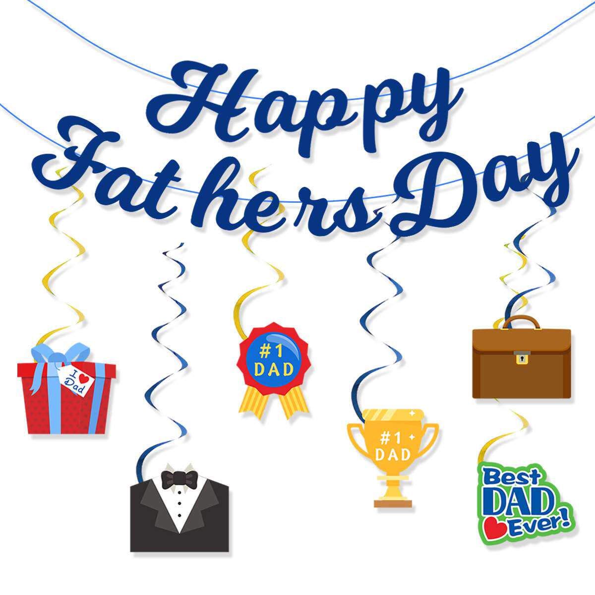 2024父亲节新款HAPPY FATHERS DAY连体拉花拉旗螺旋挂饰定制
