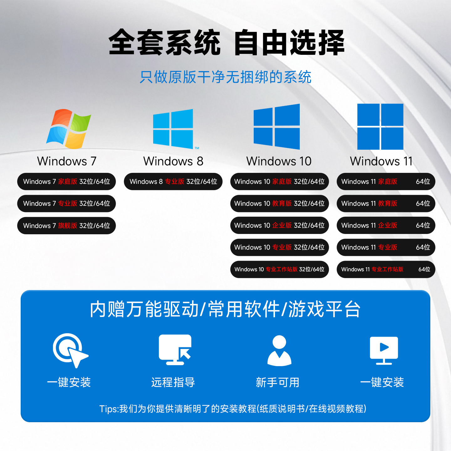电脑重装系统U盘Win11/10/8/7远程安装官方原版自动安装永久激活