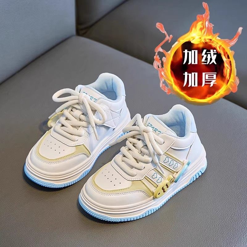 小黄鸭女童2025年冬季新款儿童百搭运动鞋中大童加绒板鞋小白鞋潮