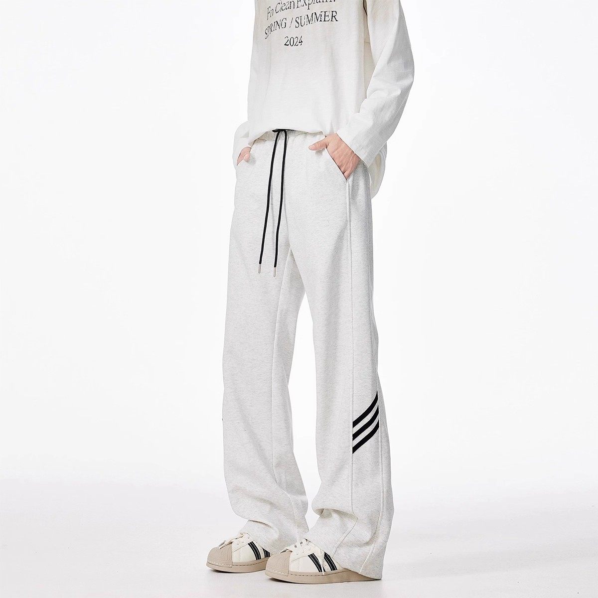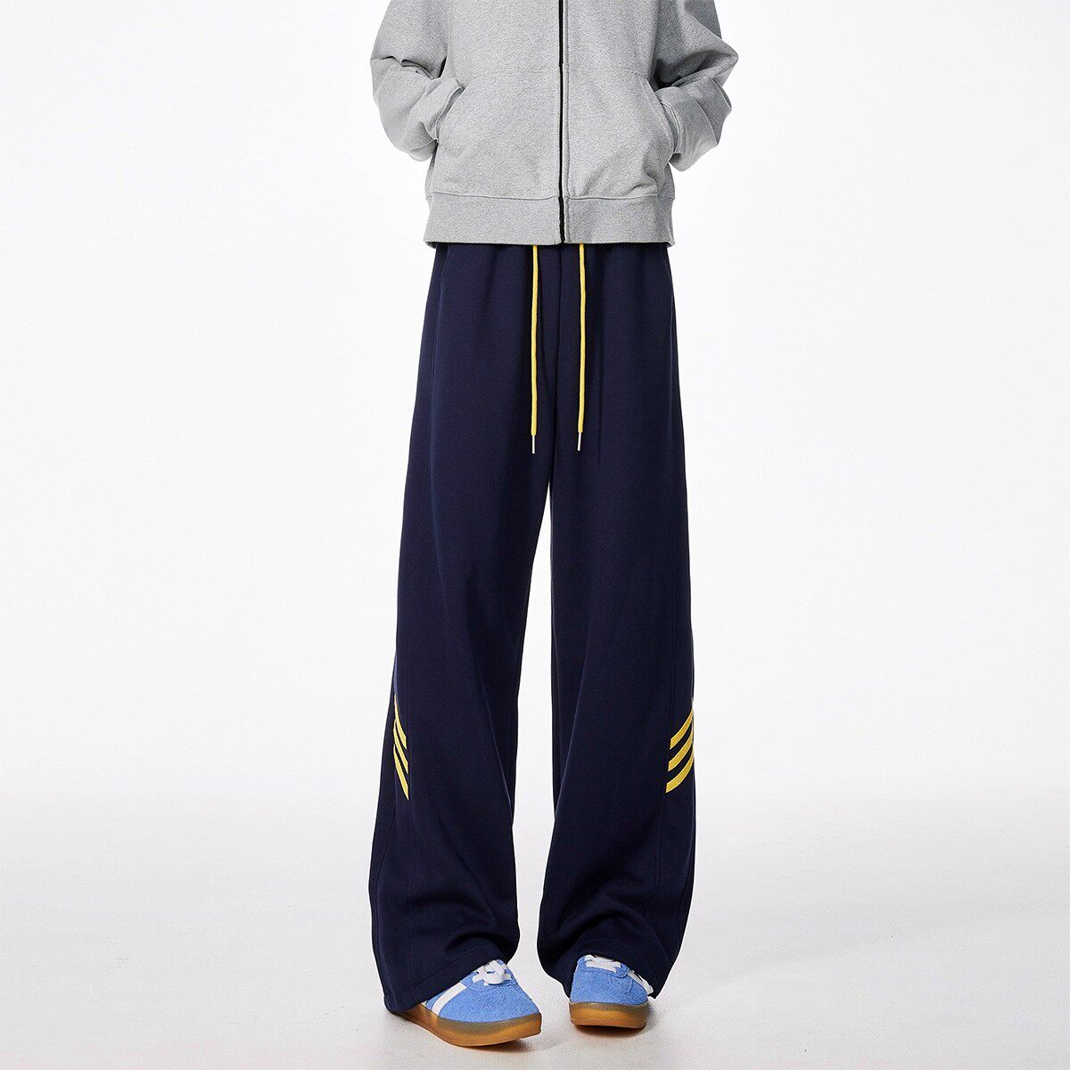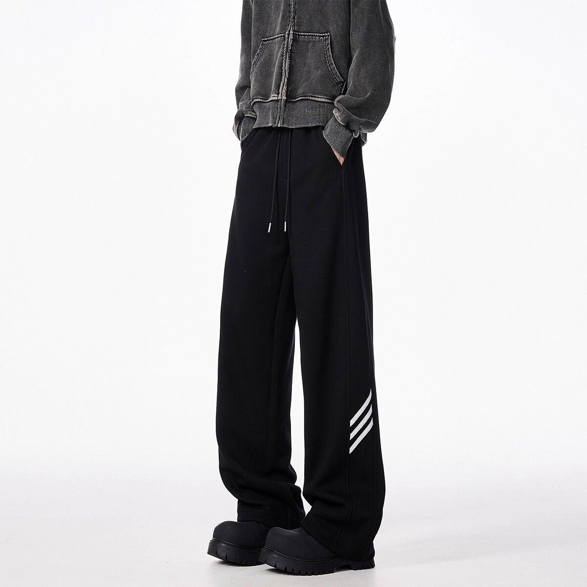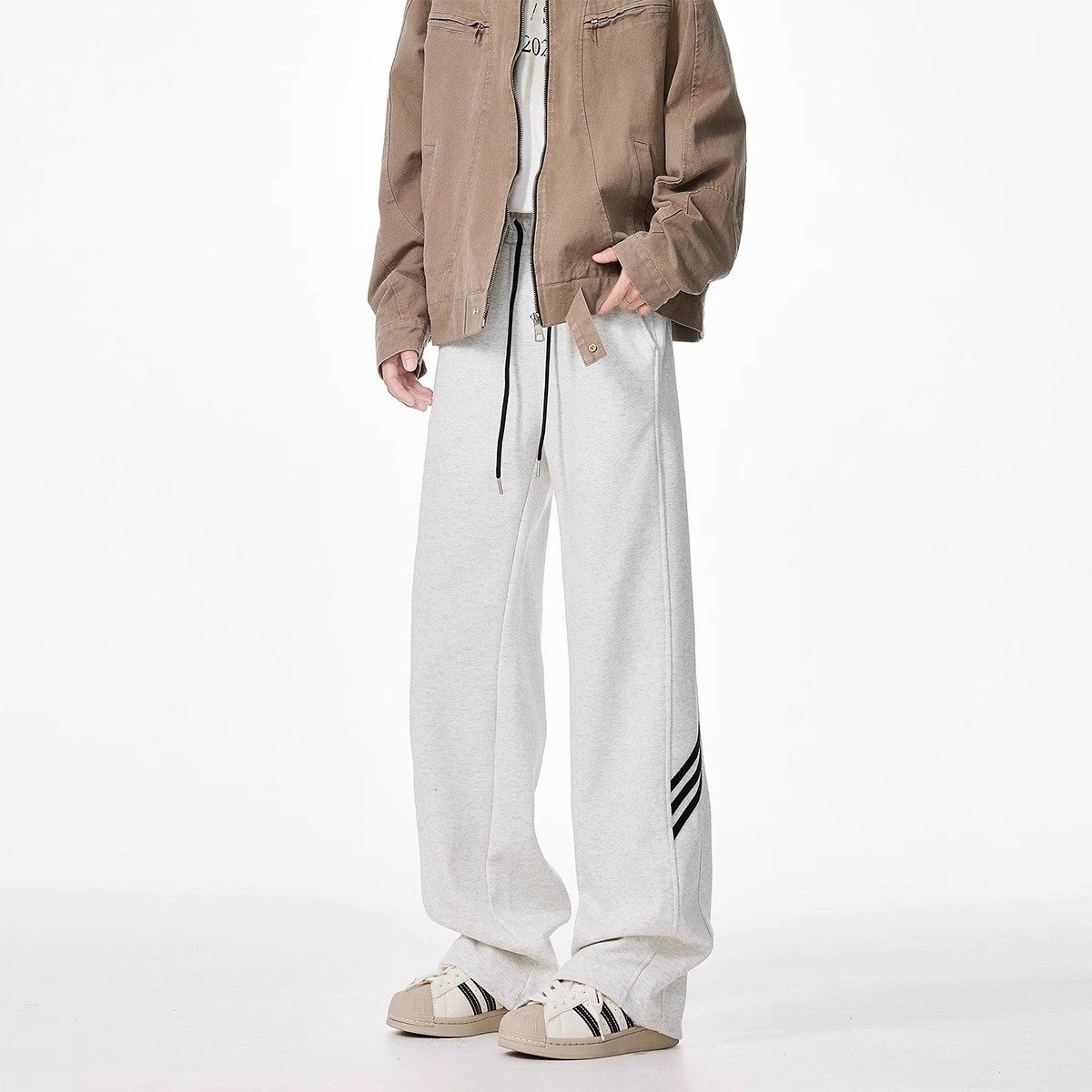 重磅条纹运动卫裤男生高街美式潮牌宽松直筒休闲裤垂感阔腿长裤子
