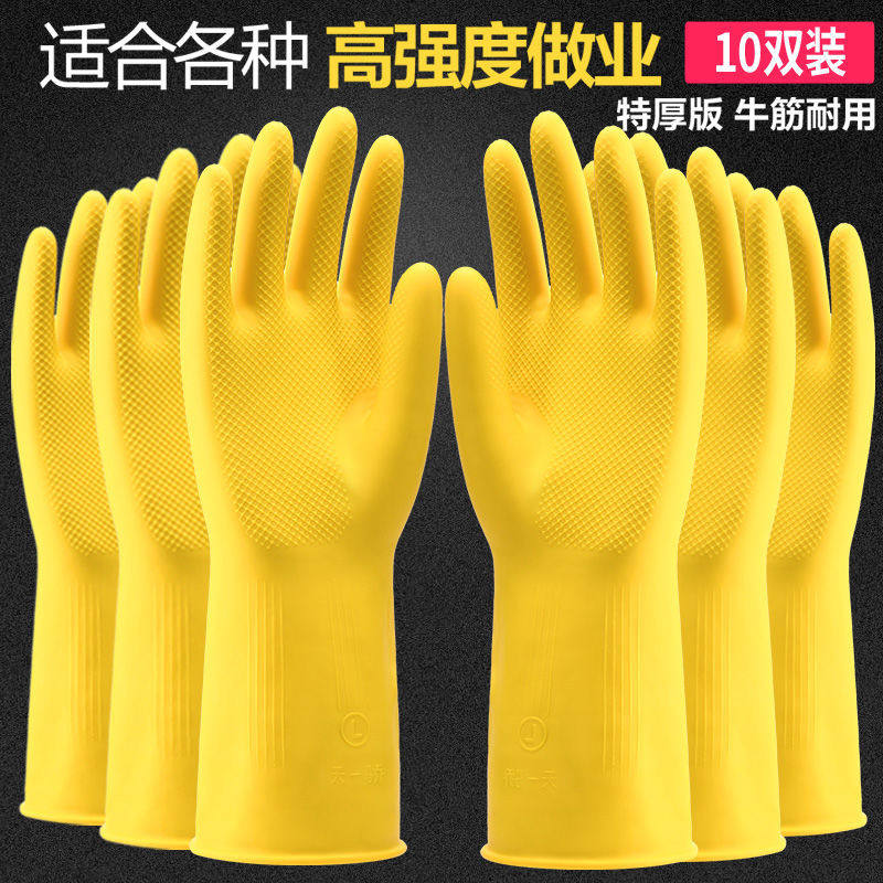 5双 加厚橡胶洗碗手套牛筋乳胶皮防水家务女塑胶劳保工业耐磨耐用