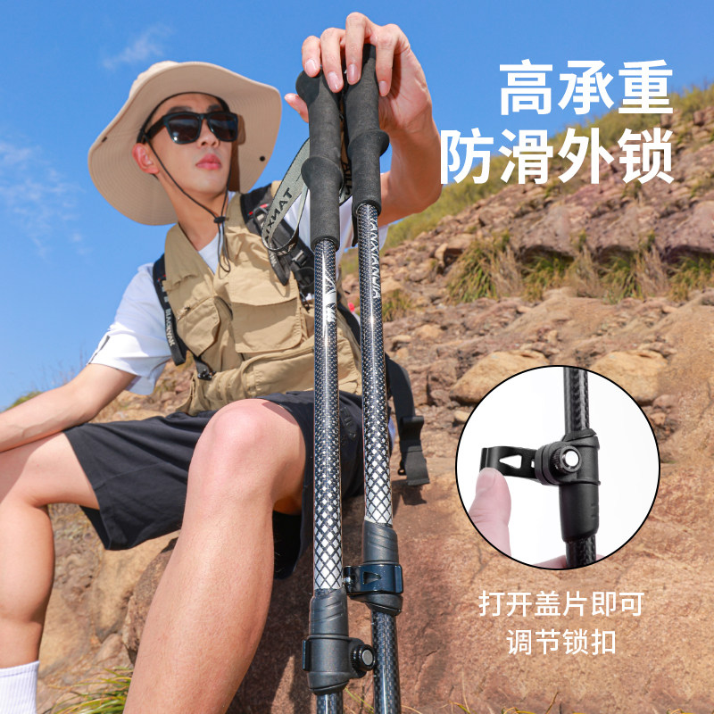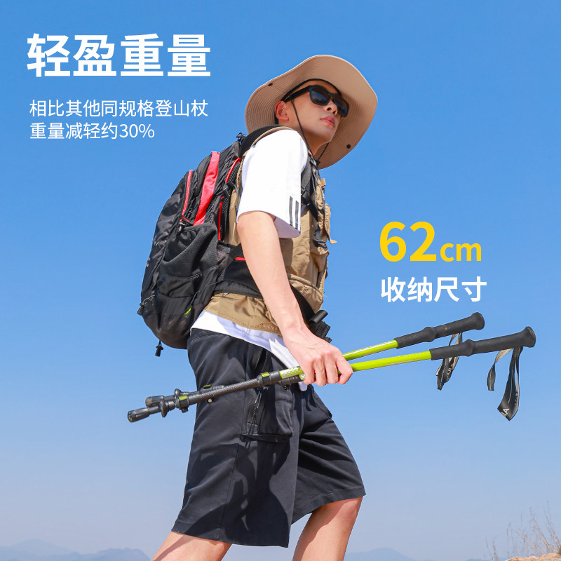 户外登山杖手杖碳素超轻伸缩折叠滑雪防滑拐杖多功能爬山徒步装备