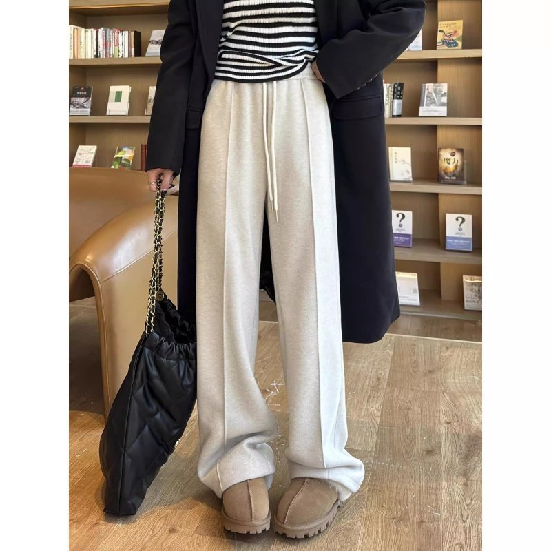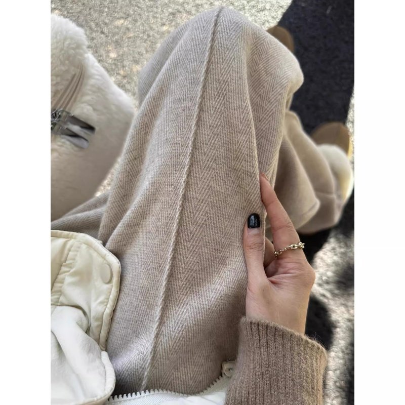 窄版阔腿裤女2025秋冬新款胖mm高腰显瘦垂感毛呢直筒裤加绒小个子