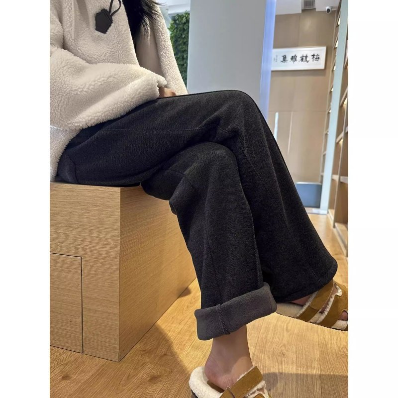 深灰色微喇休闲裤女2025秋冬加绒胖妹妹mm高腰弹力显瘦运动卫裤潮