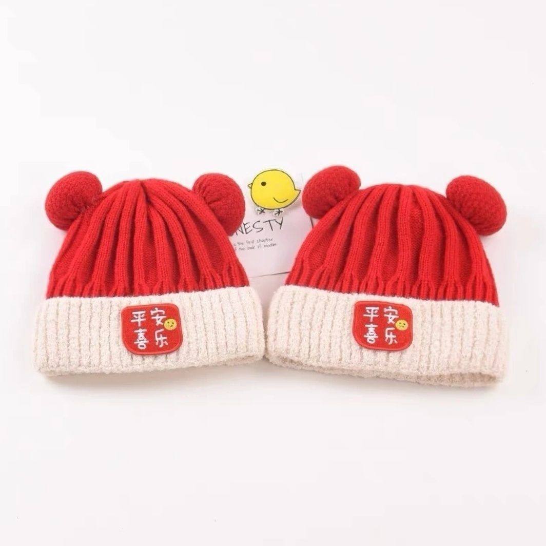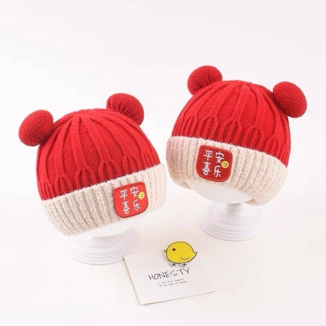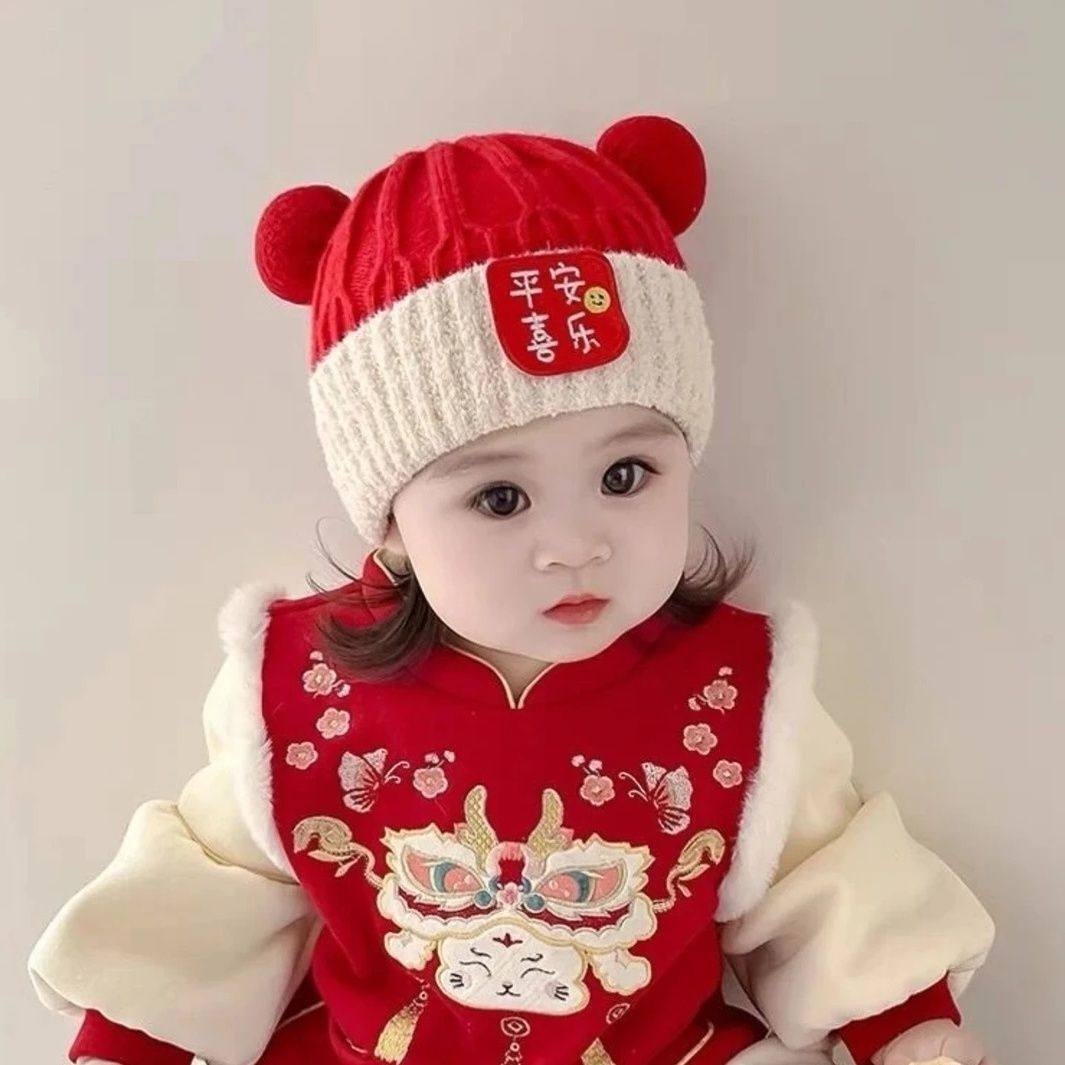 婴儿帽子秋冬季新年男童女童可爱保暖喜庆宝宝鹿角冬天帽龙角毛线