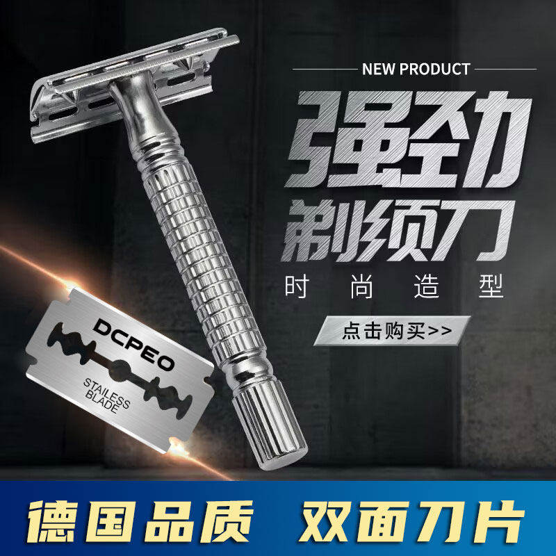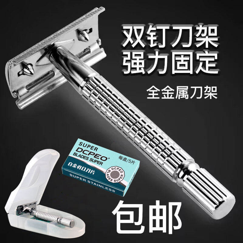 新款全金属刮胡刀手动剃须刀老式刮胡子刀架刀片双面往复式刮脸毛
