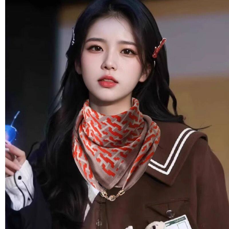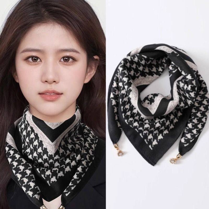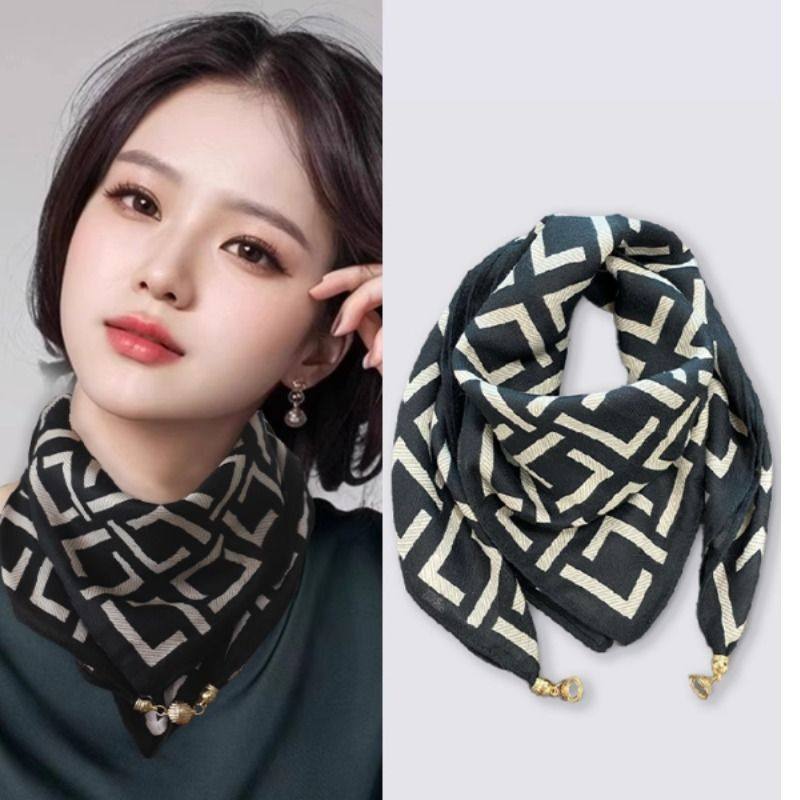 2025新款磁吸扣丝巾女方巾护颈保暖围脖三角百搭薄款围巾小方棉麻