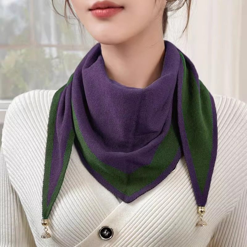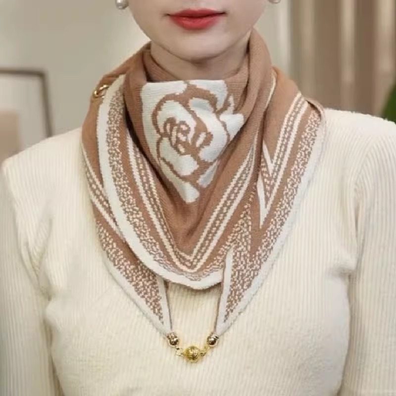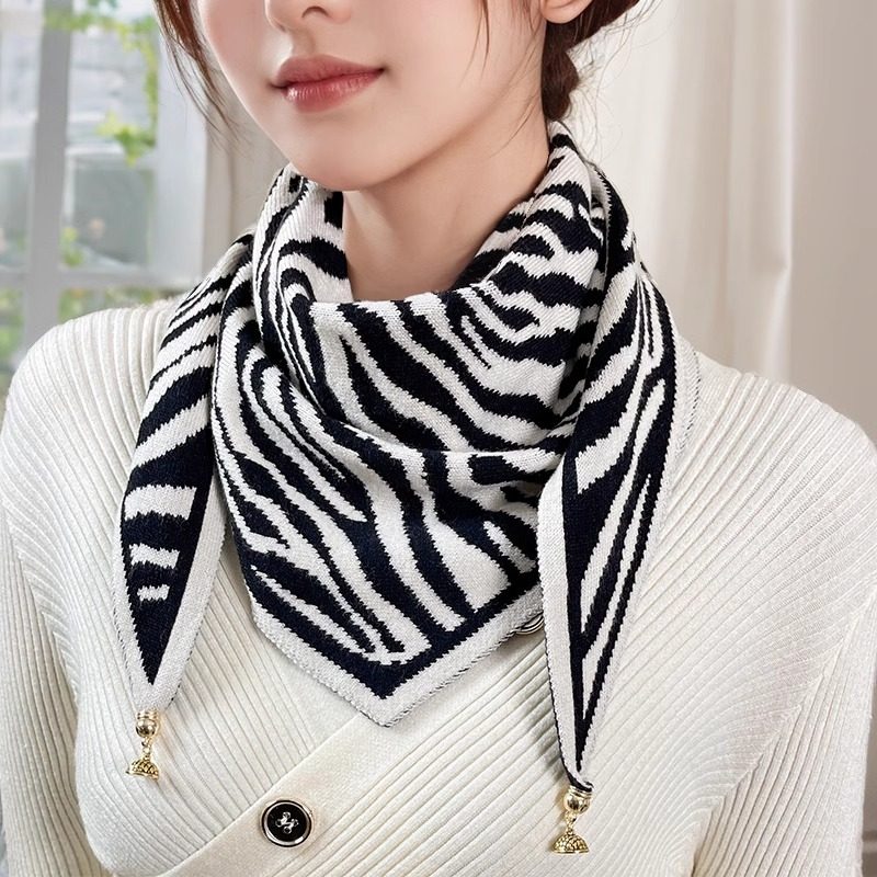 磁吸扣针织围巾2024新款秋冬双面三角巾女多功能加厚保暖护颈百搭