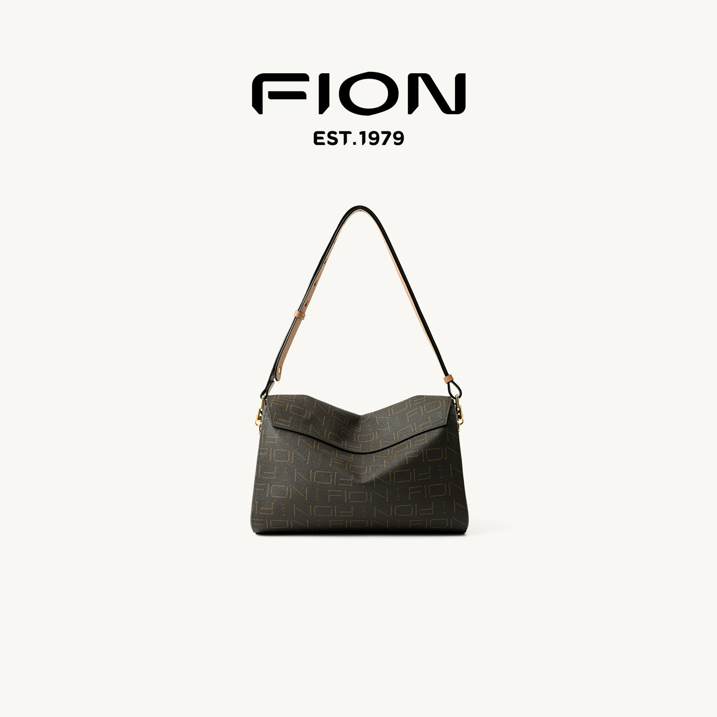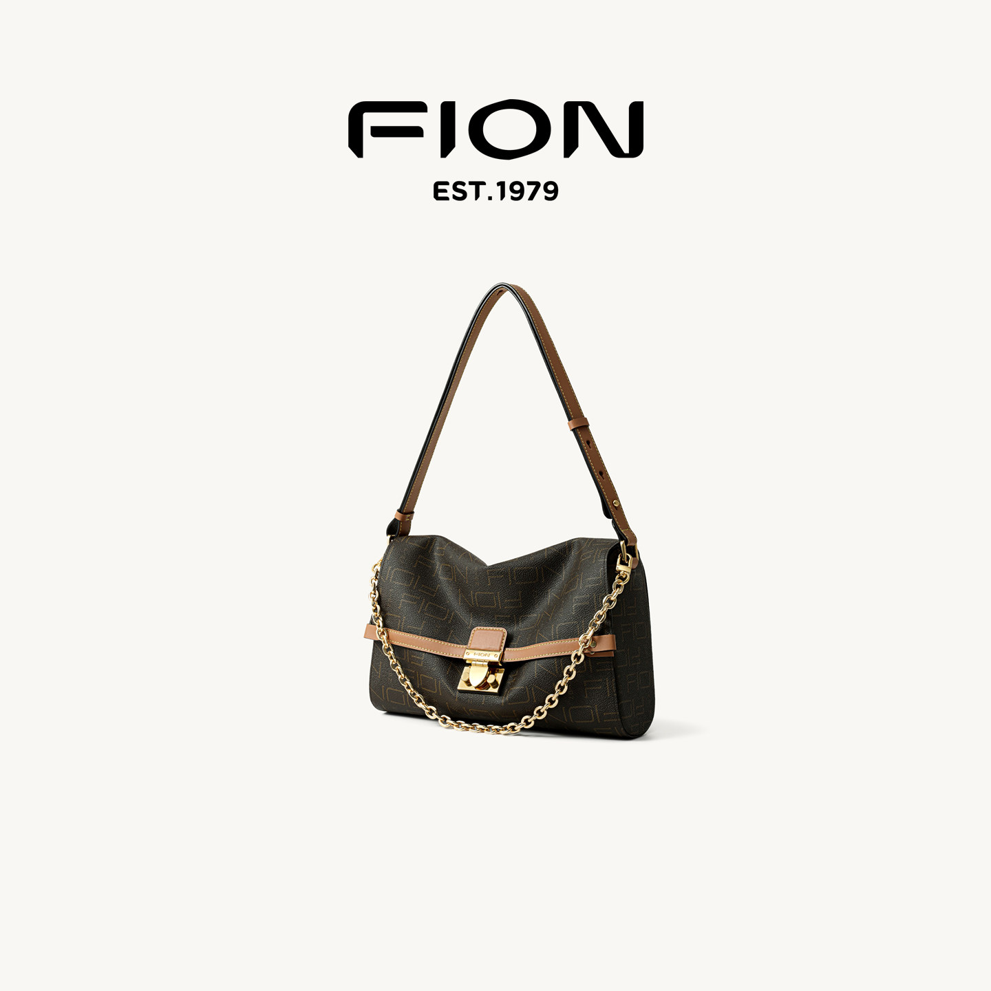 Fion/菲安妮波士顿包经典老花小方包2025新款复古单肩斜挎女包包