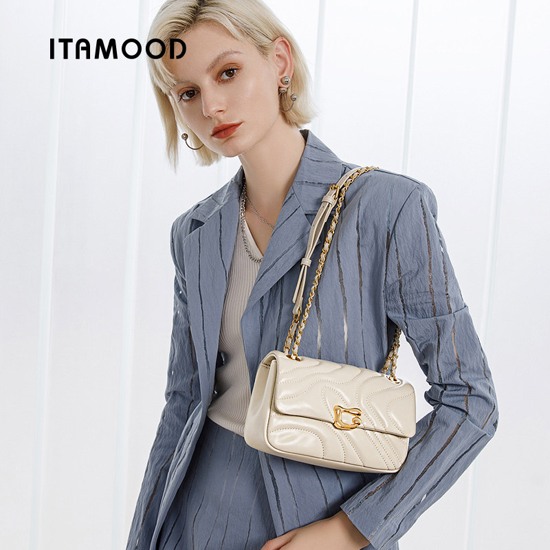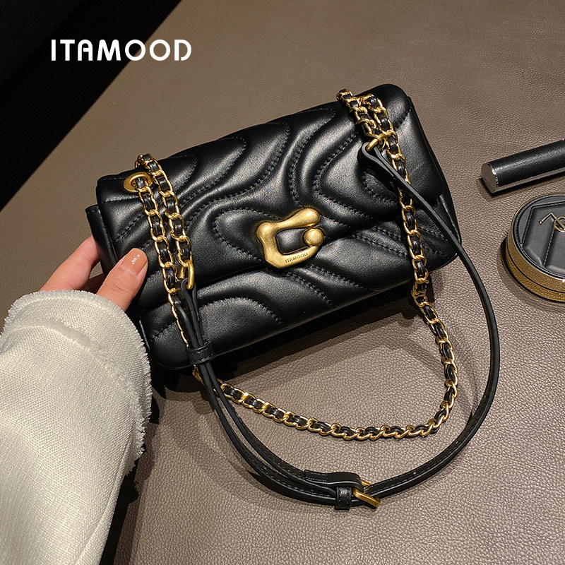 妙迪新款法式小香风真皮菱格链条包通勤小方包大容量单肩斜挎包女