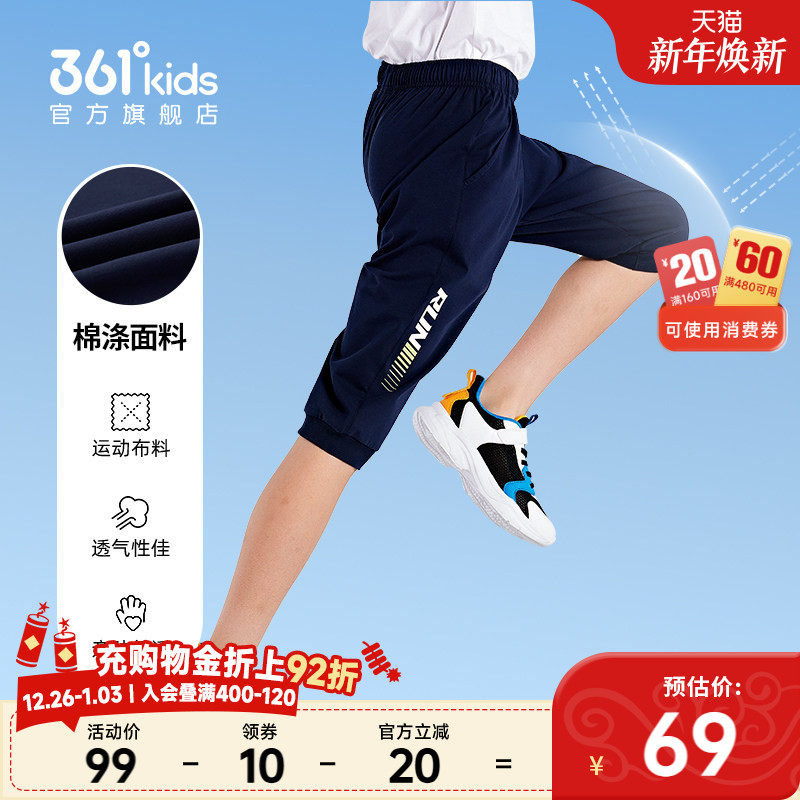 361°童装男童七分裤2025夏季中大童新款速干运动裤子透气防蚊裤