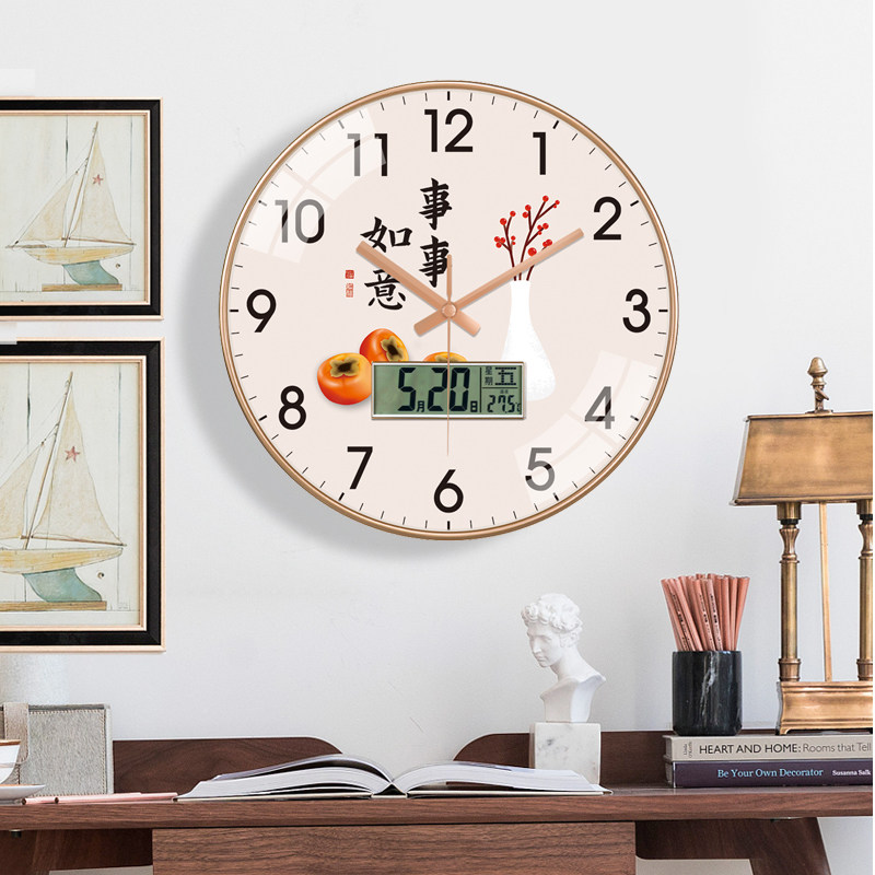 新款大吉大利客厅家用时尚双日历静音挂钟万年历现代温度钟表时钟