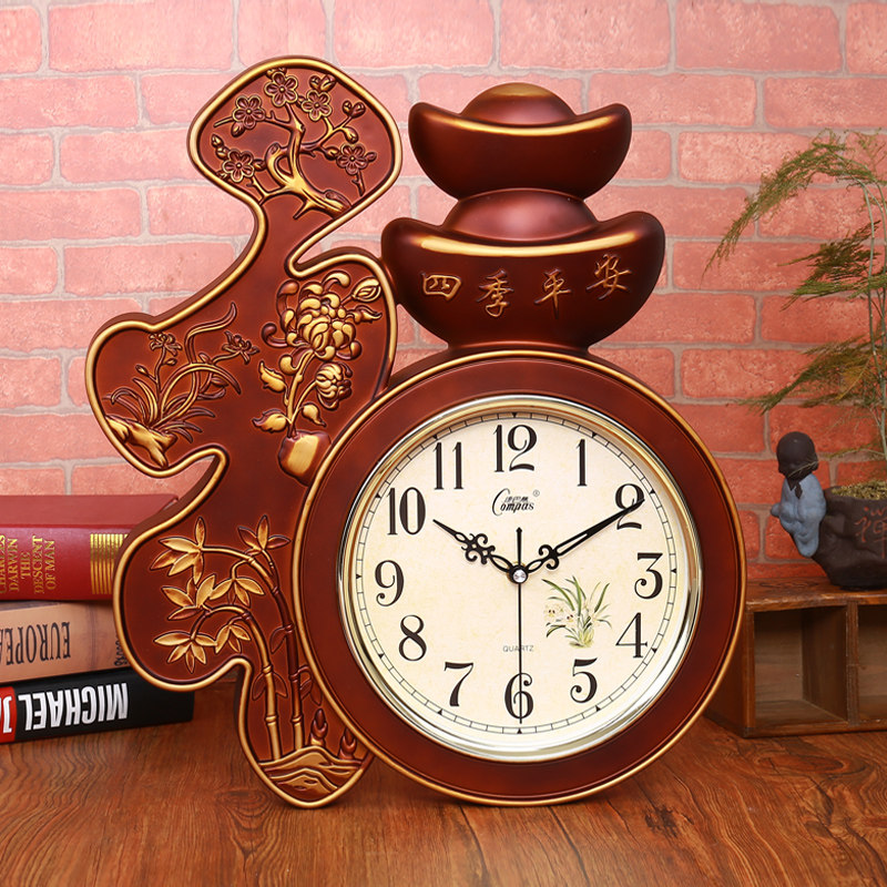 静音石英钟挂钟福字年年有余装饰客厅简约中式挂墙时尚家用时钟表