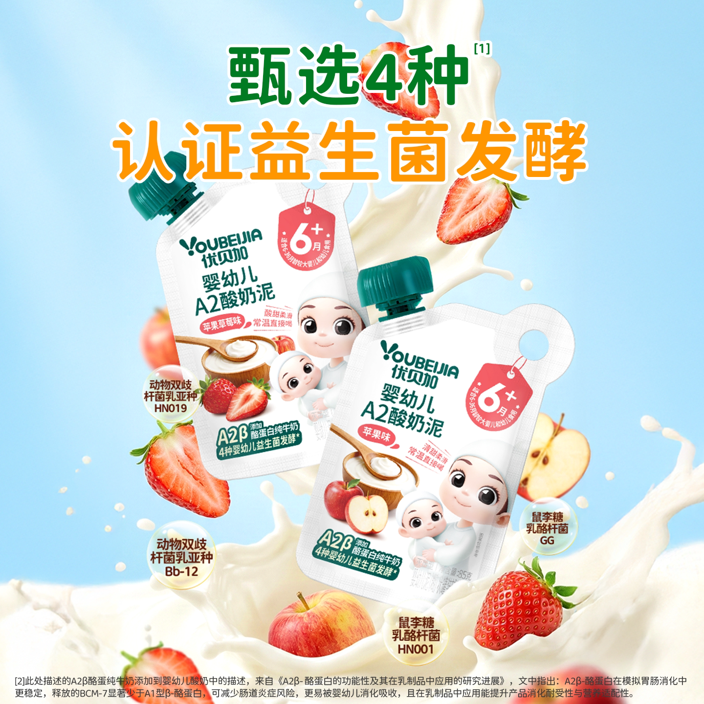 优贝加宝宝酸奶果泥辅食添加酪蛋白纯牛奶益生菌婴幼儿常温酸奶泥
