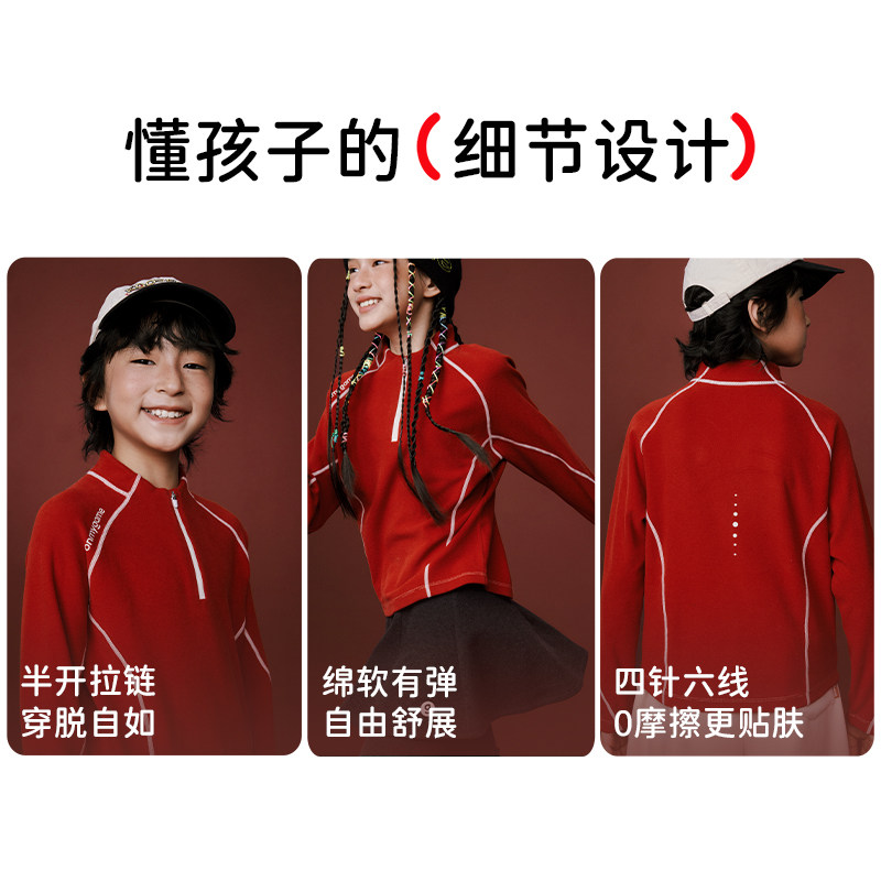 onmygame【小马当先】儿童本命年打底衫男女童红色长袖T恤26年冬