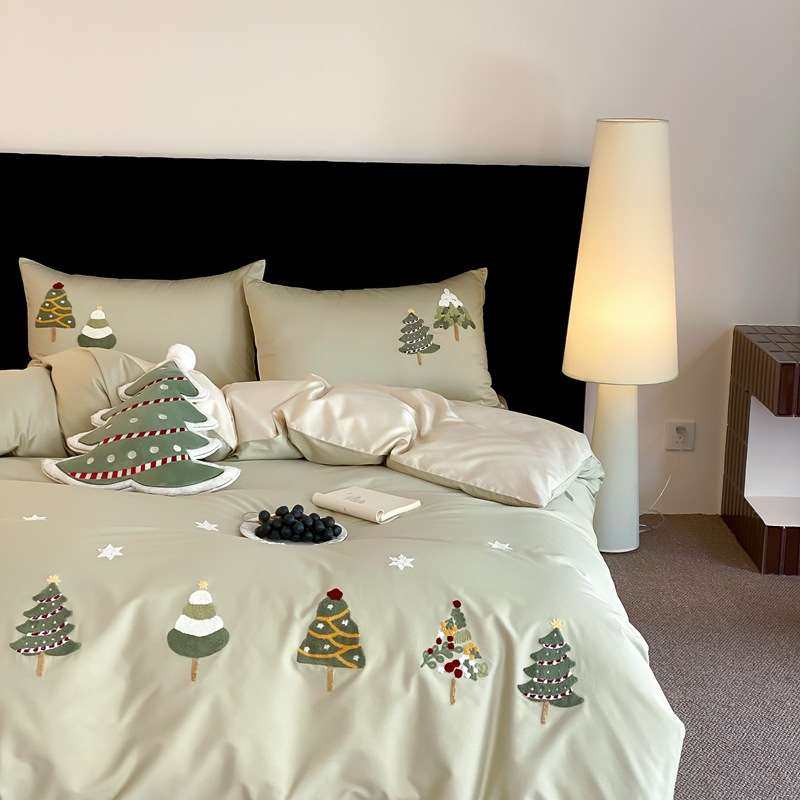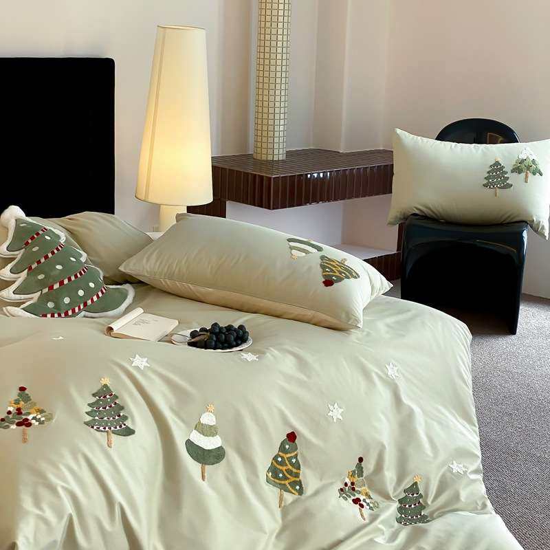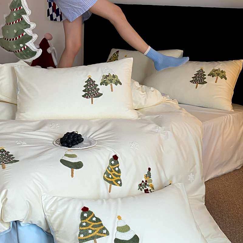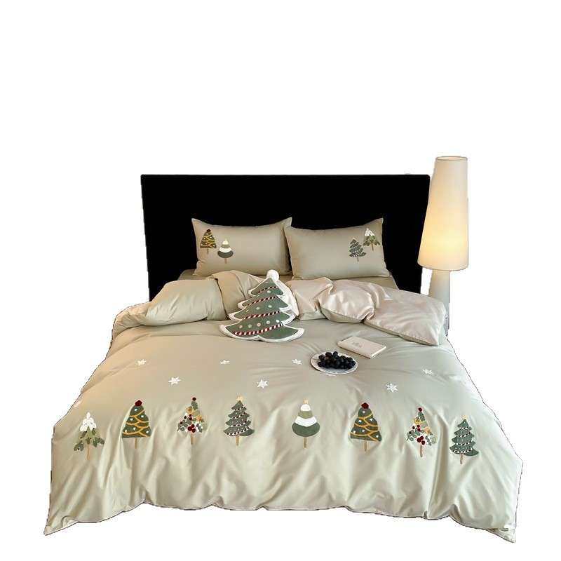 100S澳棉毛巾绣少女心床上用品四件套四季可用亲肤纯棉被套床单