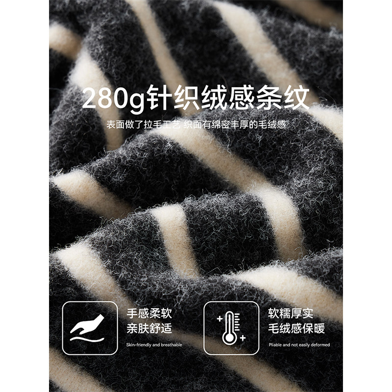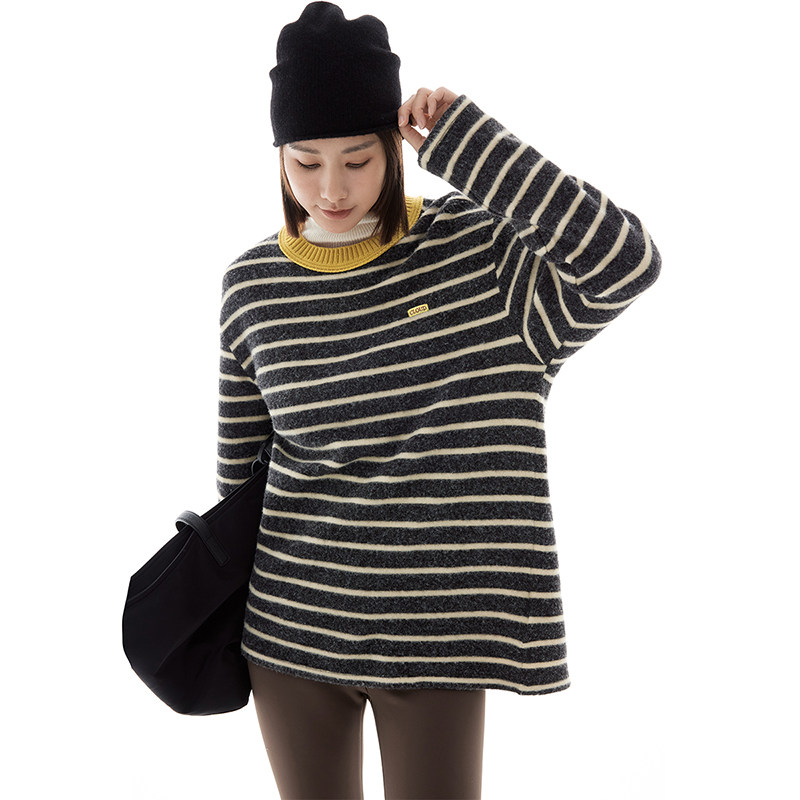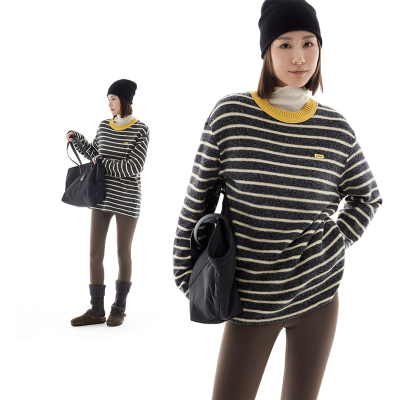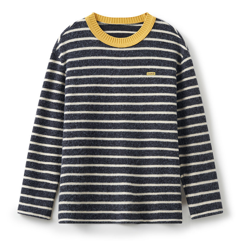 CLOUDSPACE【暖流层绒感T】经典条纹撞色圆领套头卫衣冬上衣