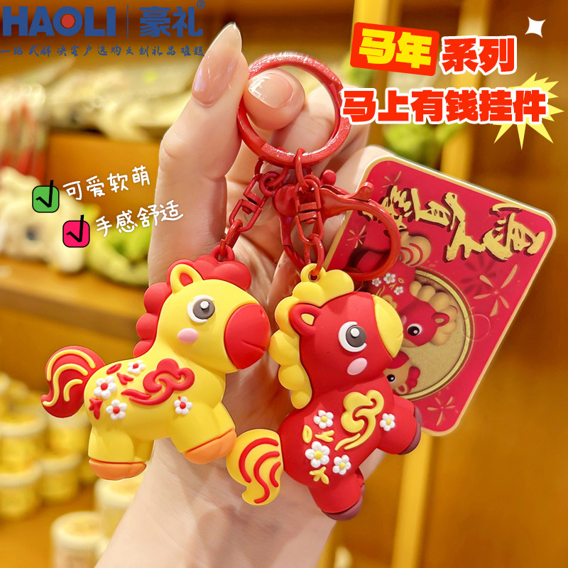 喜庆祥云马上有钱公仔钥匙扣马年吉祥物本命年书包挂件送朋友礼物