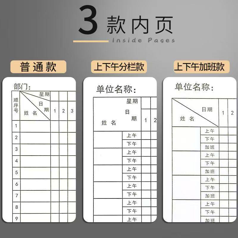 登记本签到考勤记表天工员工.本人上班31可出勤考勤簿临时工工作2025员工个人考勤记表新