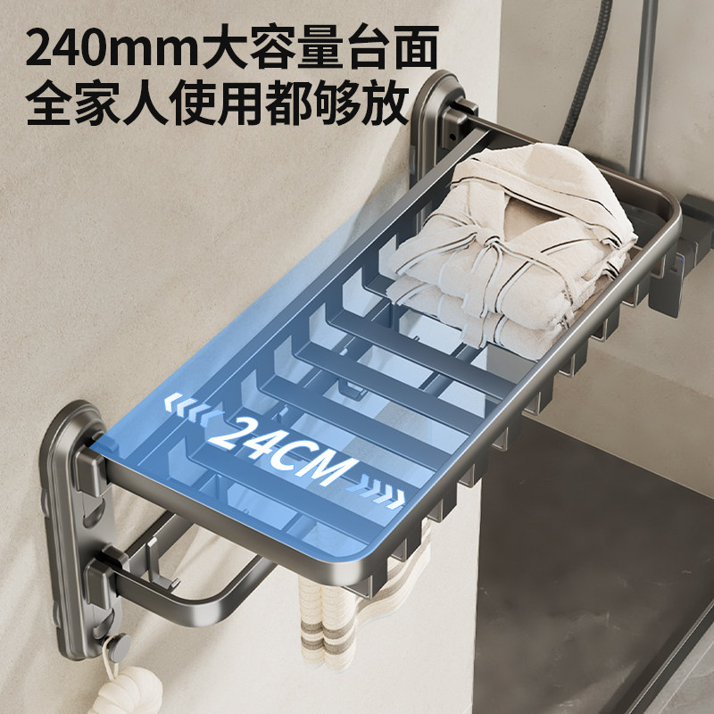 浴室置物架304不锈钢加厚壁挂免打孔折叠厕所卫生间凉毛巾的架子