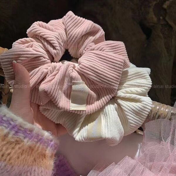 爆款奶油色灯芯绒发绳ins少女发圈大肠圈头绳扎发皮筋发饰品