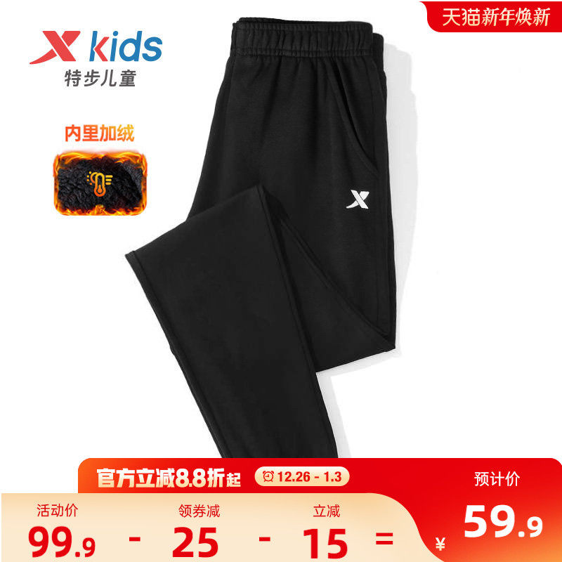 特步童装男童加绒裤子运动裤儿童大童长裤秋冬新款保暖裤冬装卫裤
