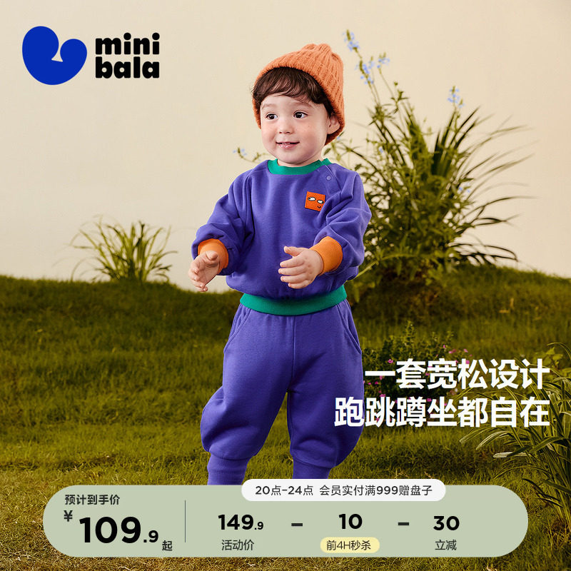 迷你巴拉巴拉男女童宝宝柔软宽松长袖长裤撞色入园套装春新品