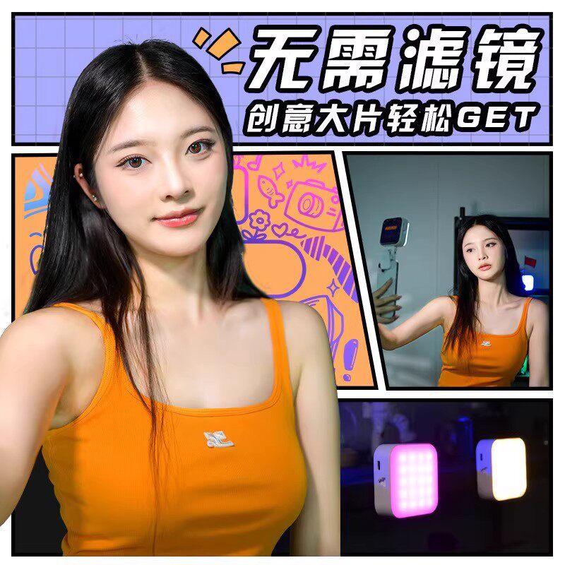 豆腐灯rgb口袋补光灯直播下巴手机拍照面部补光灯摄影便携式桌面打光灯手机美颜美妆led补光灯自拍相机单反