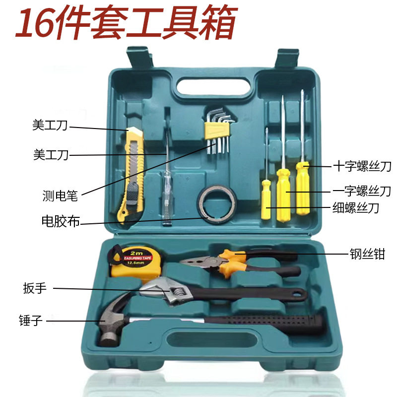 工具箱家庭维修组合工具螺丝刀全套家车用 16件套