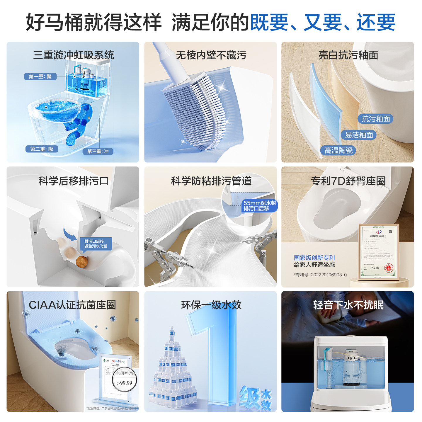 【重磅新品】箭牌马桶抗菌超漩式无棱抽水静音节水家用防溅坐便器