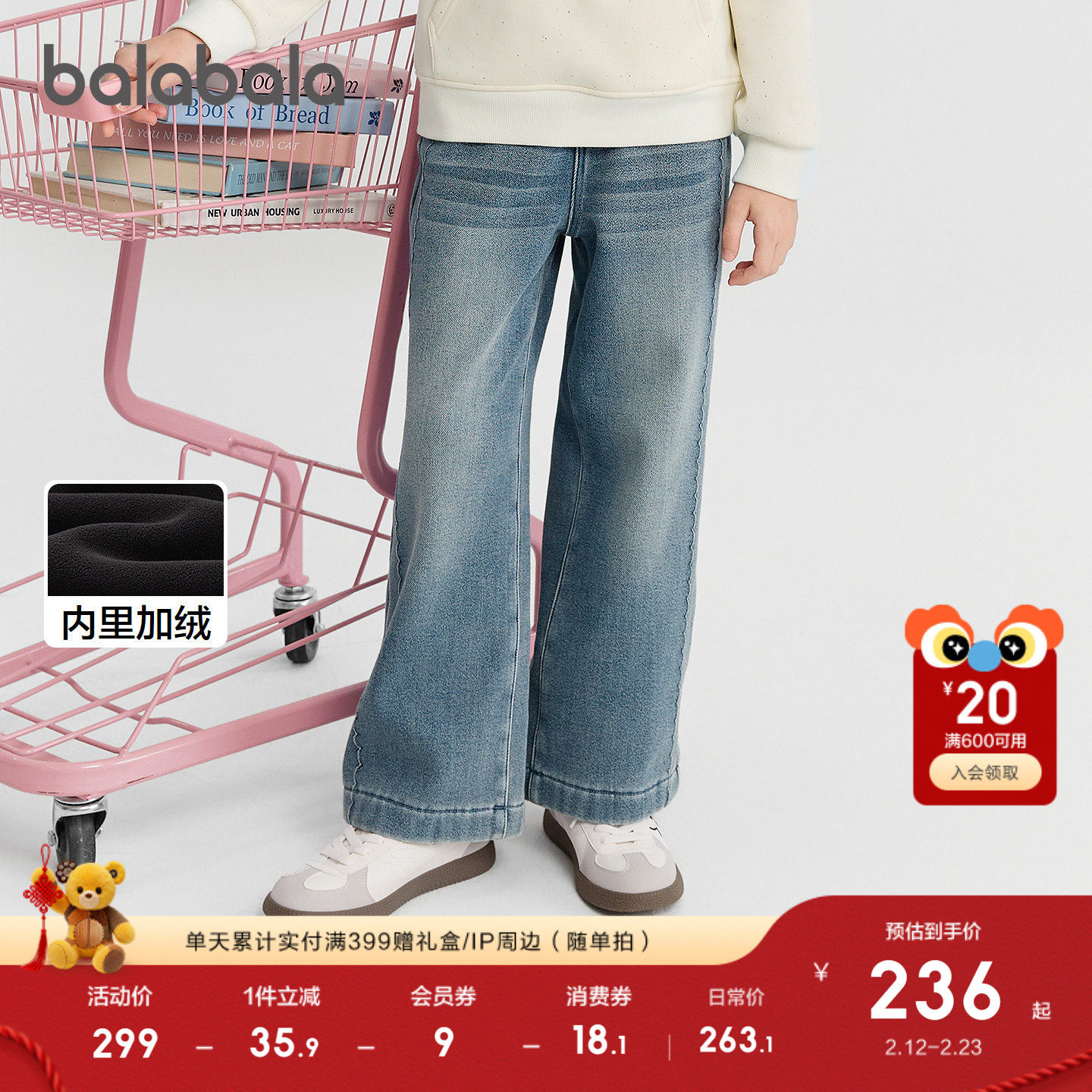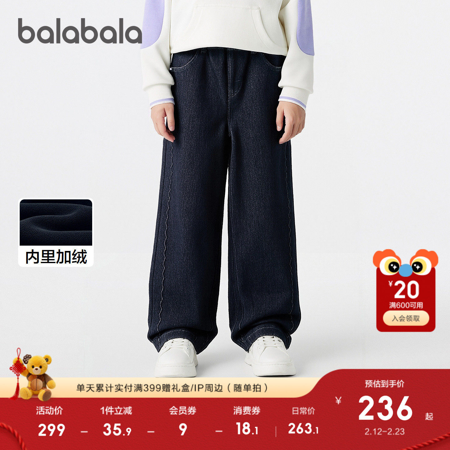 【商场同款】巴拉巴拉童装女裤子儿童牛仔裤2025冬新款加绒直筒裤