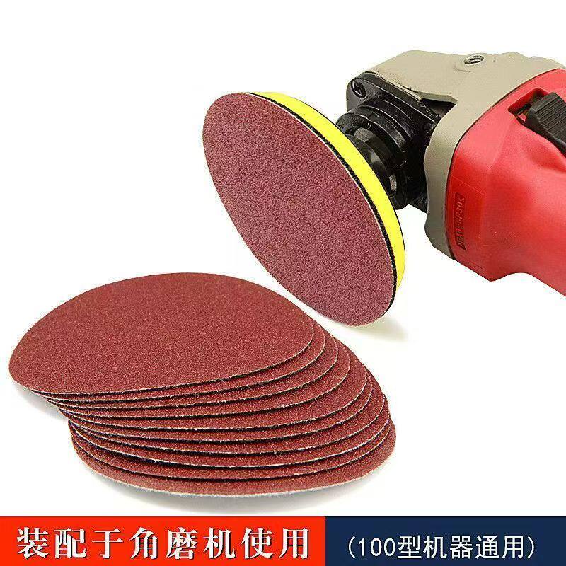 4寸圆形植绒砂纸片手电钻角磨机抛光打磨自粘式木工沙纸磨片100mm