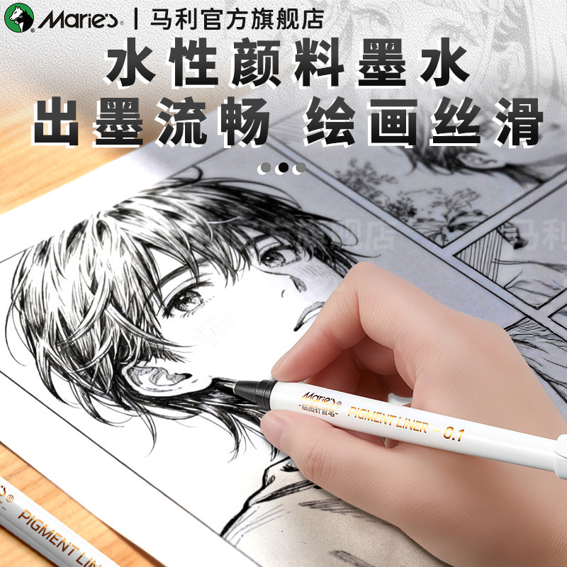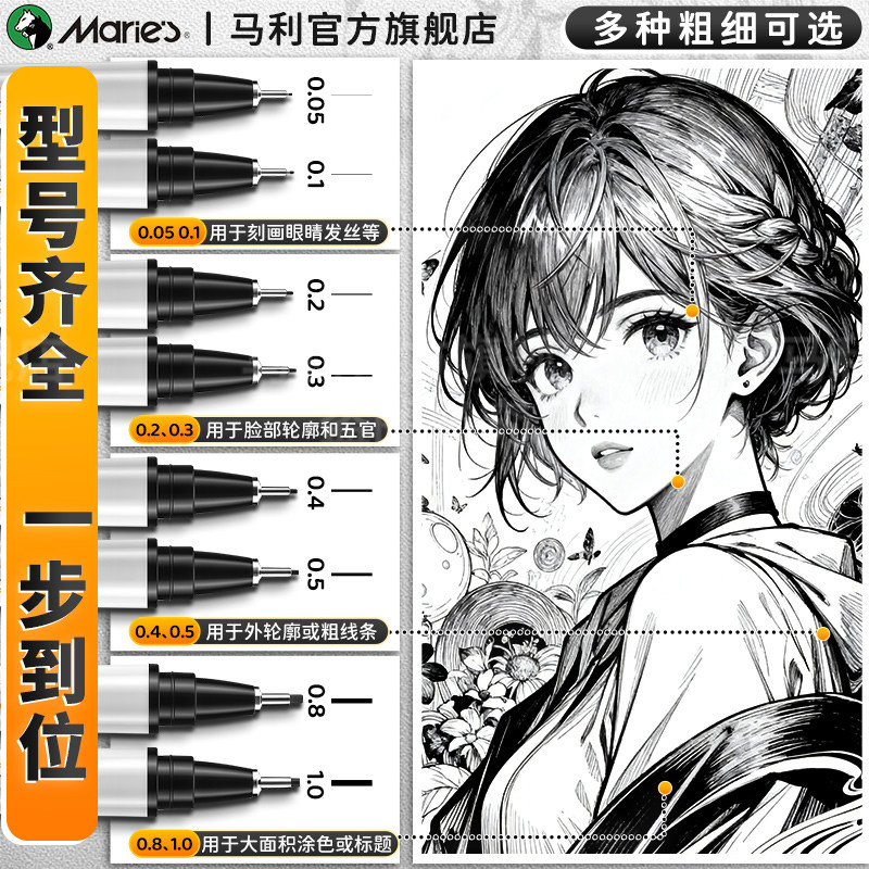 马利勾线针管笔美术专用漫画笔套装学生动漫设计绘画笔速写笔防水手账线条描笔绘图笔简笔画极细超细0.05手绘